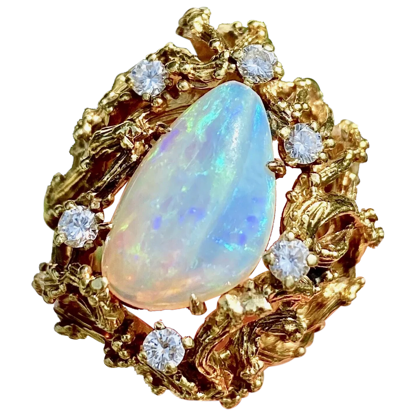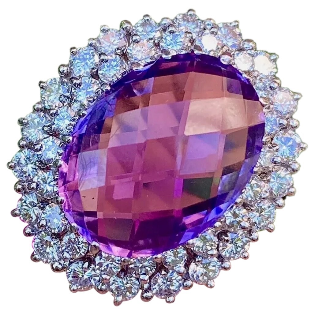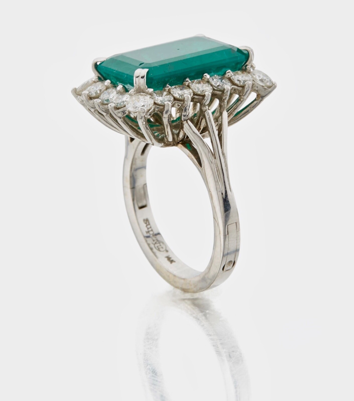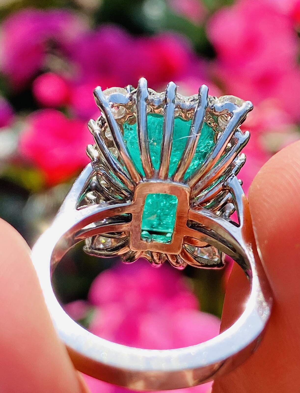 Vintage 1950s Estate 8.20ct Emerald Diamond Halo Cocktail Ring