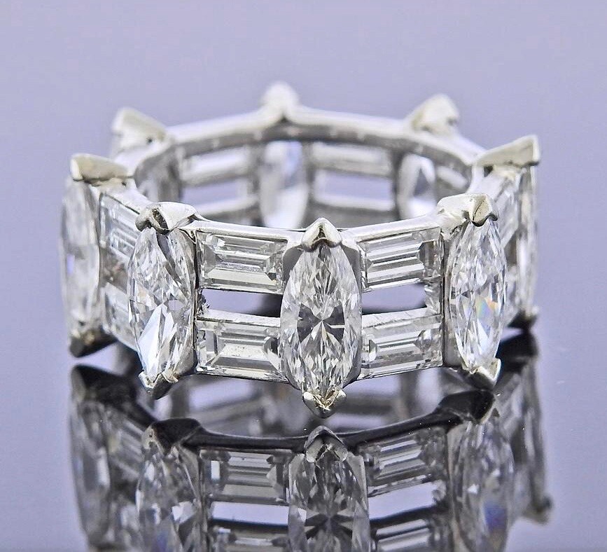 Vintage 1950s Estate Platinum 2ct Marquise Emerald Diamond Cluster Cocktail Ring