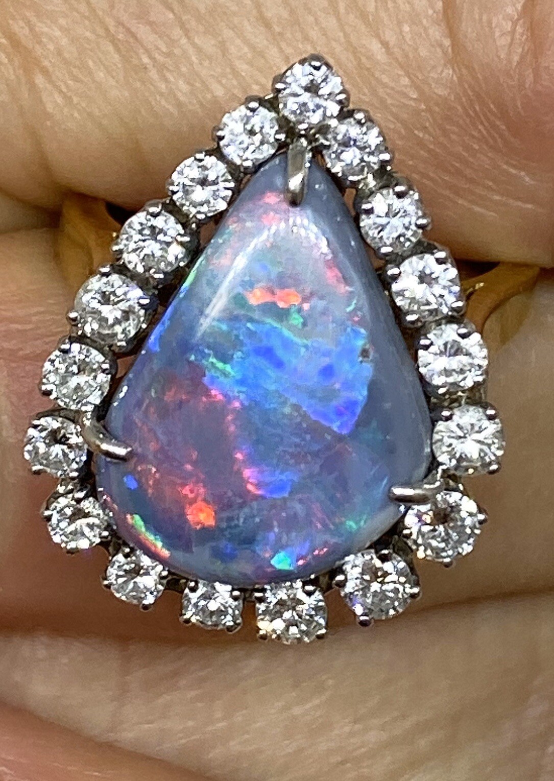 Huge Vintage 1950s 18k Black Opal G VS 1.00ct Diamond Halo Estate Ring