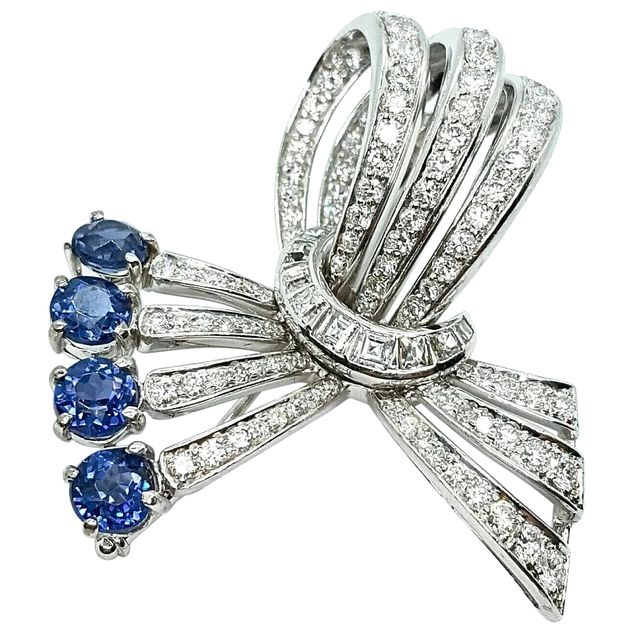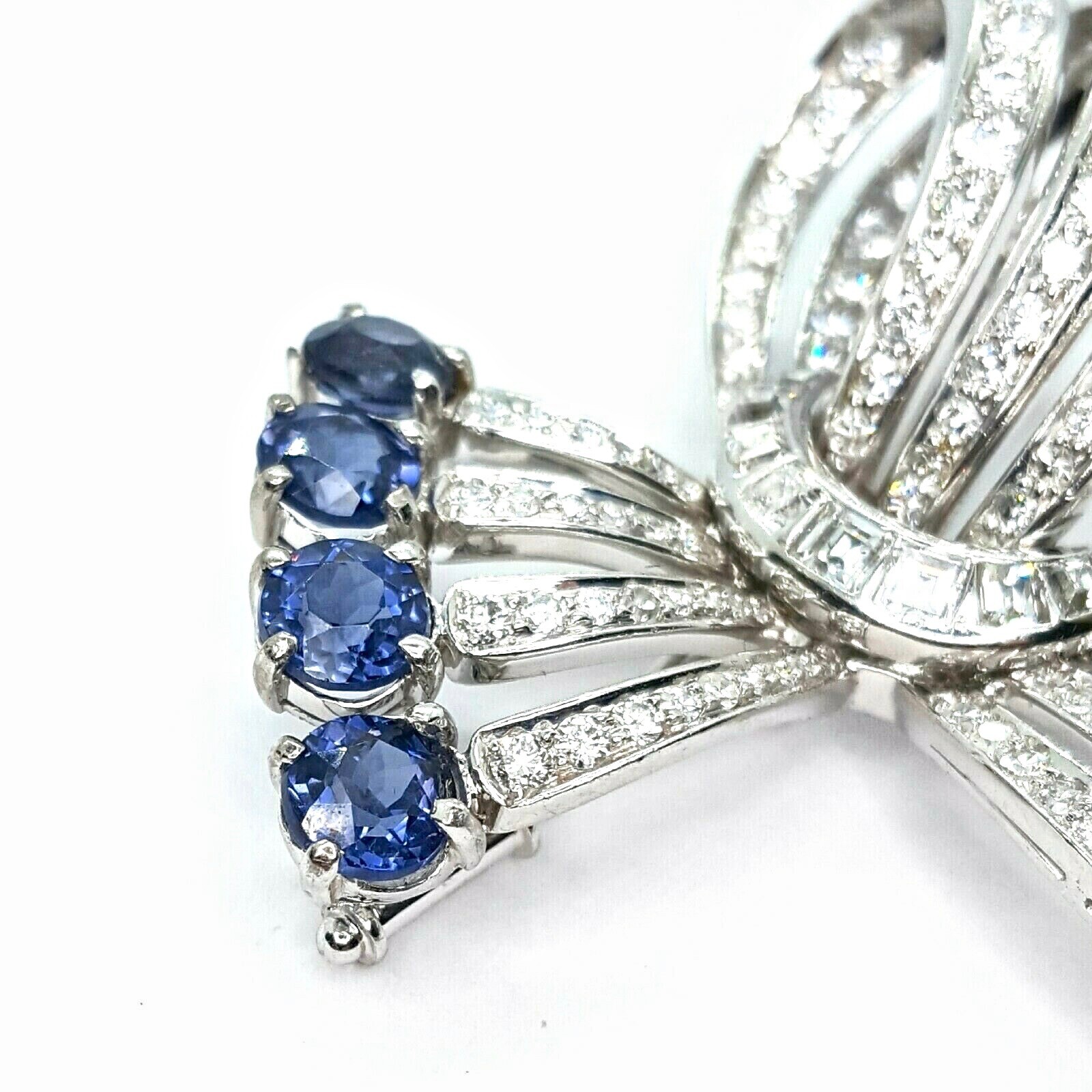 Vintage 1950s Midcentury 18k Gold 4.85ct Blue Sapphire VS Diamond Brooch Pendant