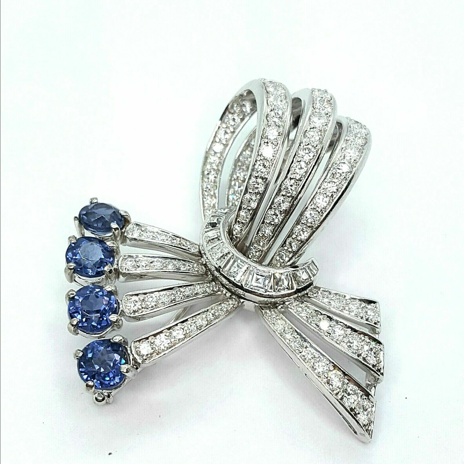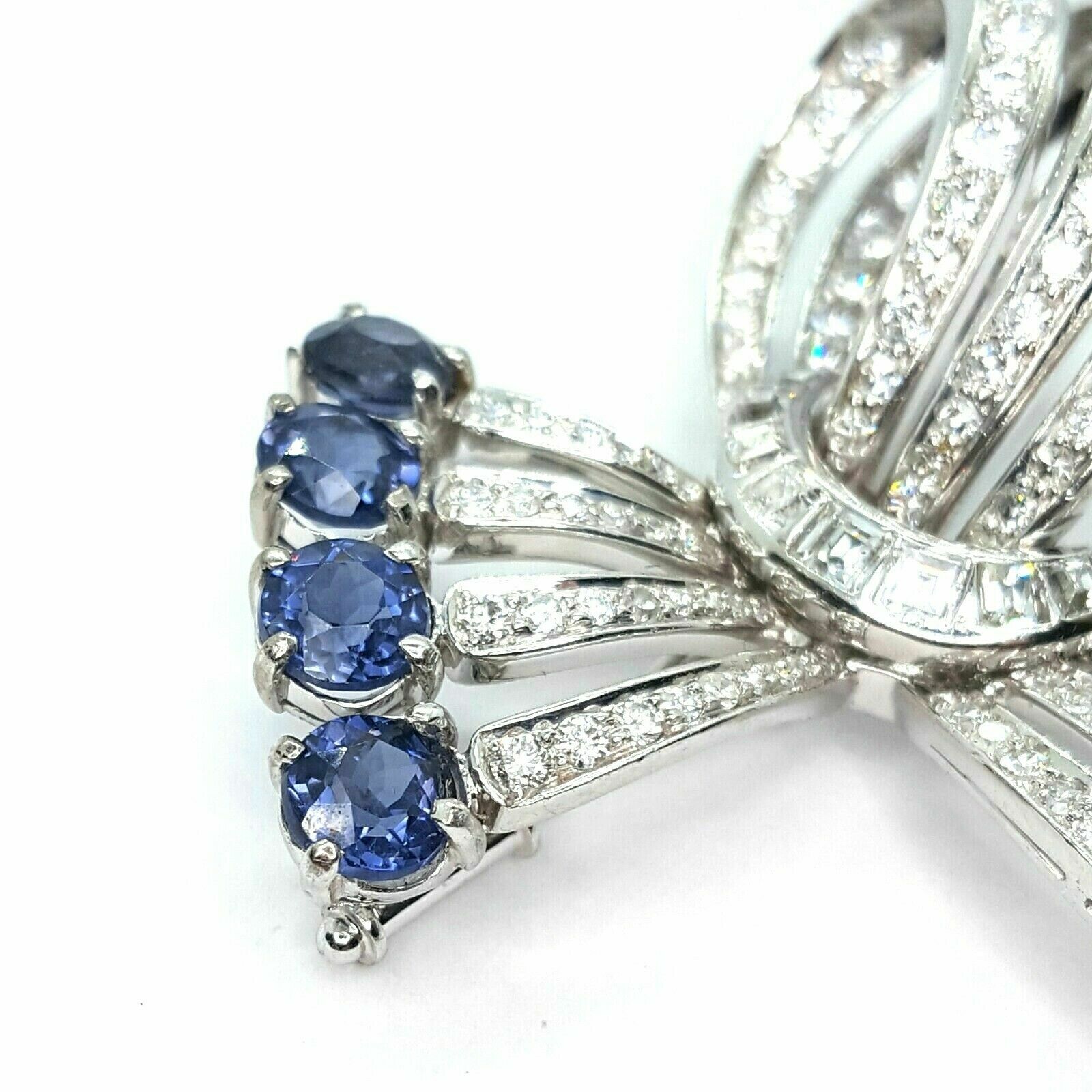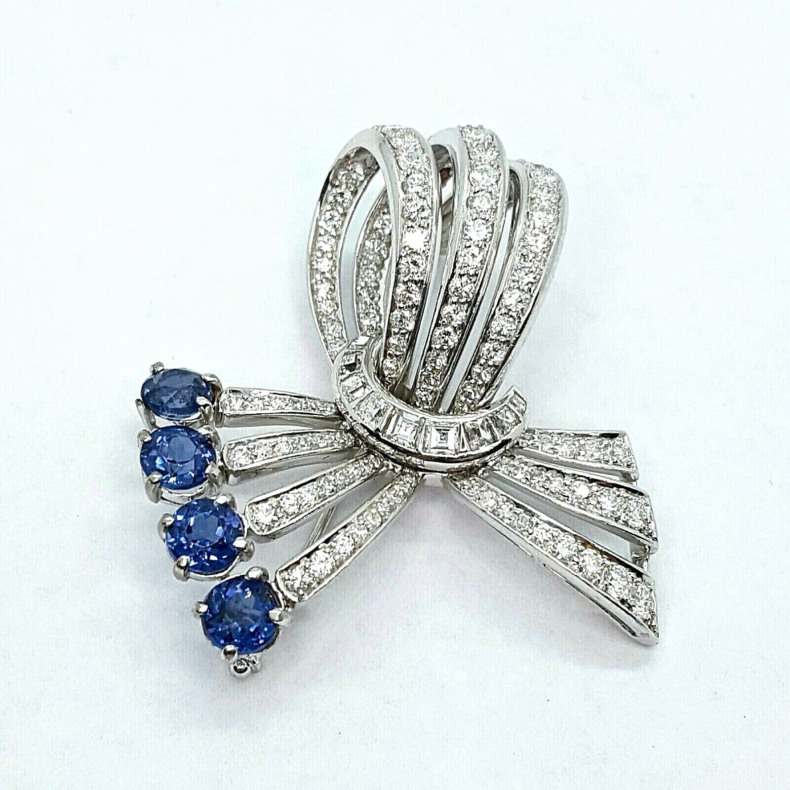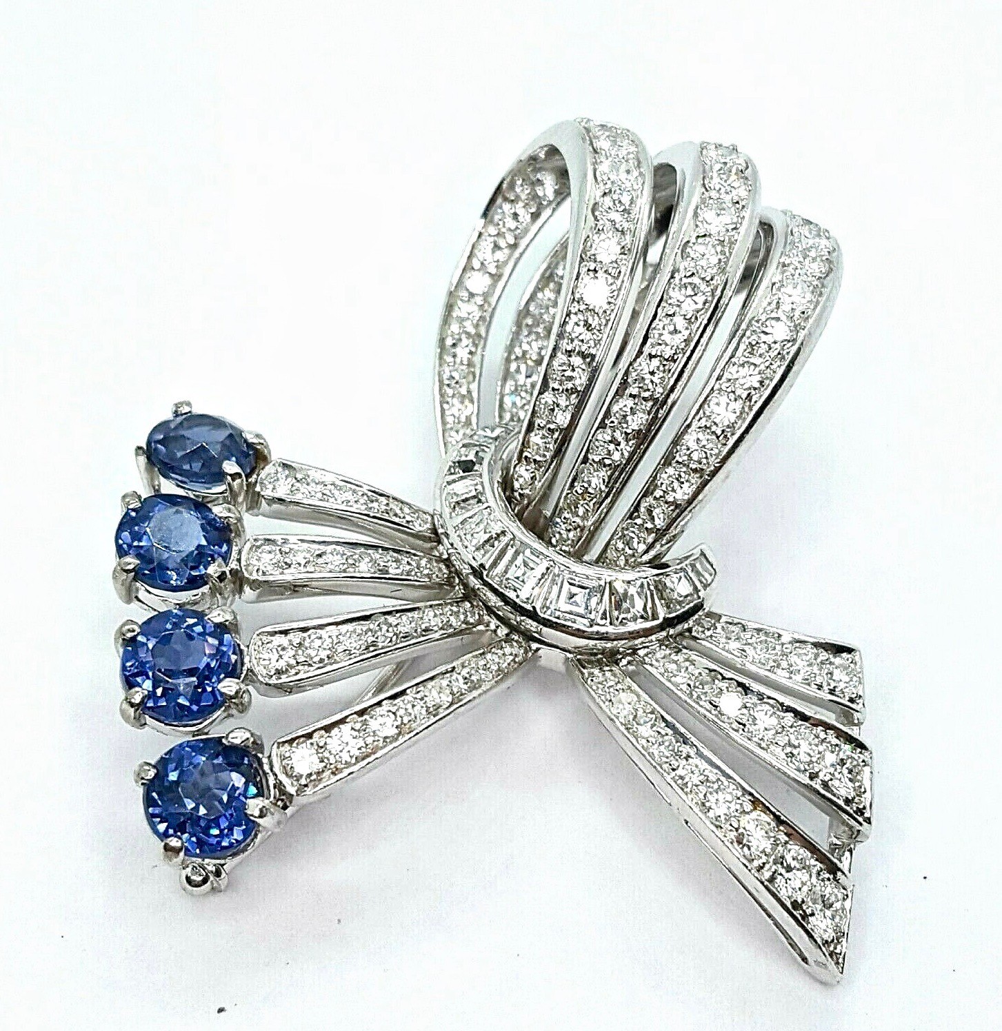 Stunning Vintage Estate 18k Gold 4.85 ct Blue Sapphire Diamond Brooch Pendant Pin