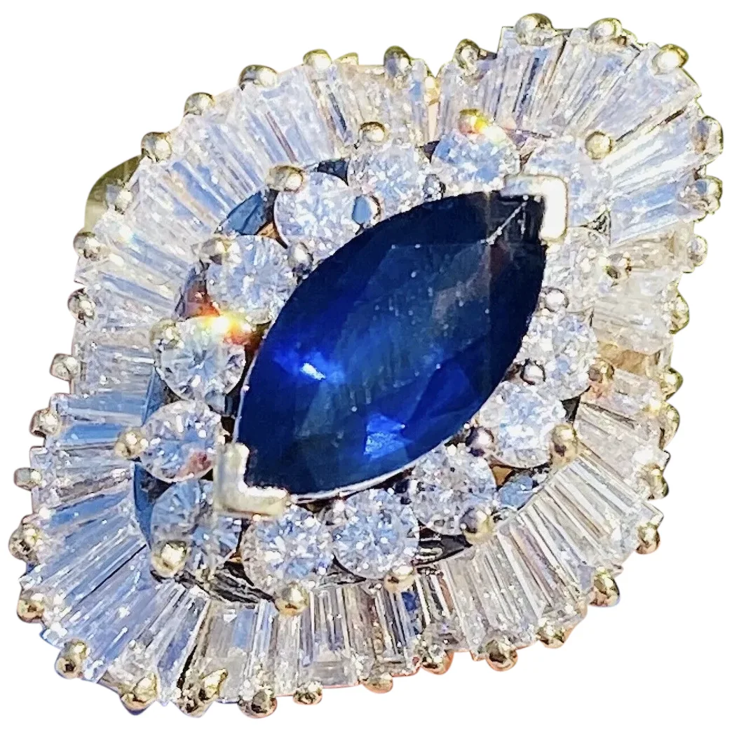 Vintage 14k White Gold 4.61ct Blue Sapphire VS Diamond Ballerina Ring