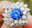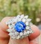 Vintage 1950s Platinum 5ct Blue Sapphire VS Diamond Halo Ballerina Ring