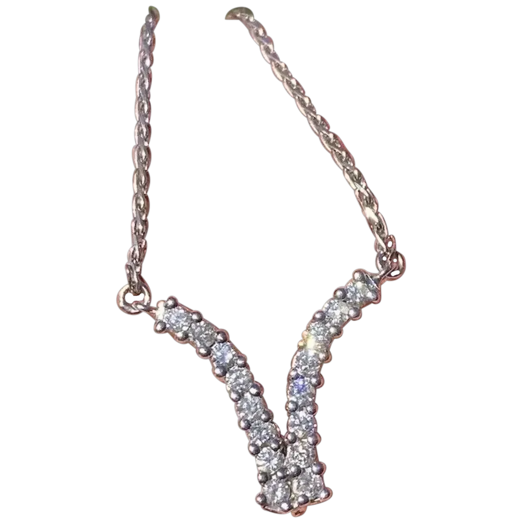 Vintage Estate 14k Gold 1.25ct Diamond Chevron Necklace Wheat Chain
