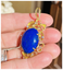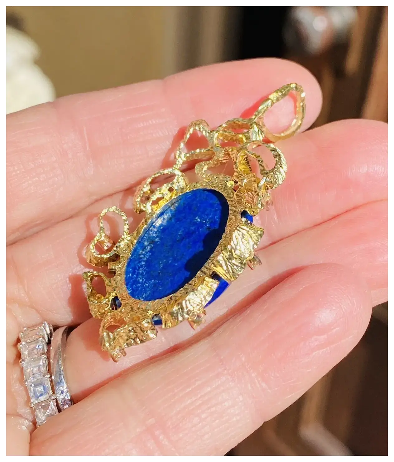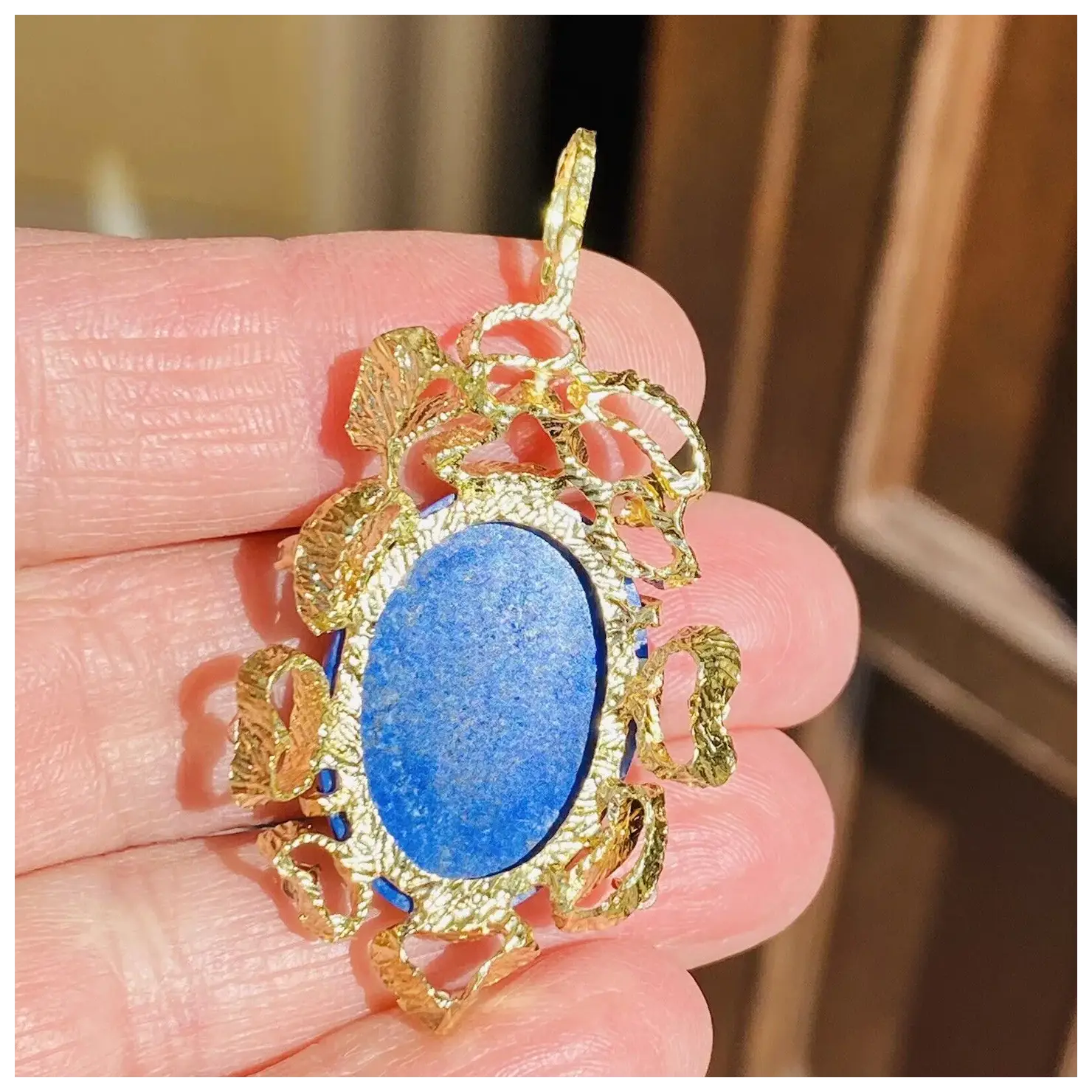 Vintage 1960s-70s 18k Gold Large Lapis Lazuli Gemstone Necklace Pendant