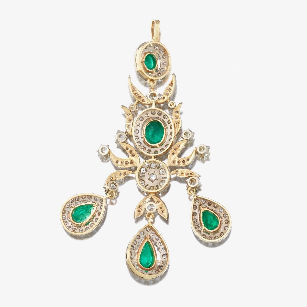 Stunning Art Deco Baroque 14kt Girandole 6.05ct Emerald Diamond Necklace Pendant