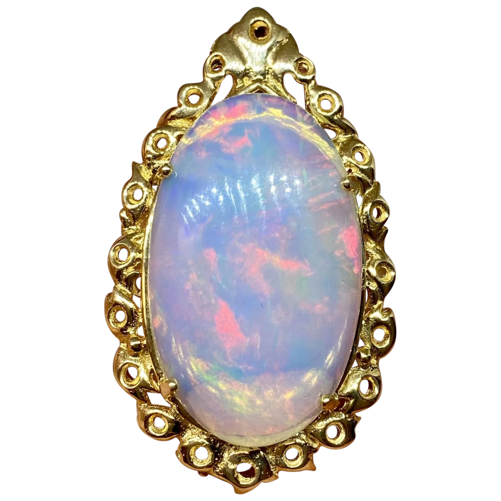 Large Heavy Vintage Estate 14k Gold Jelly Opal Pendant for Necklace