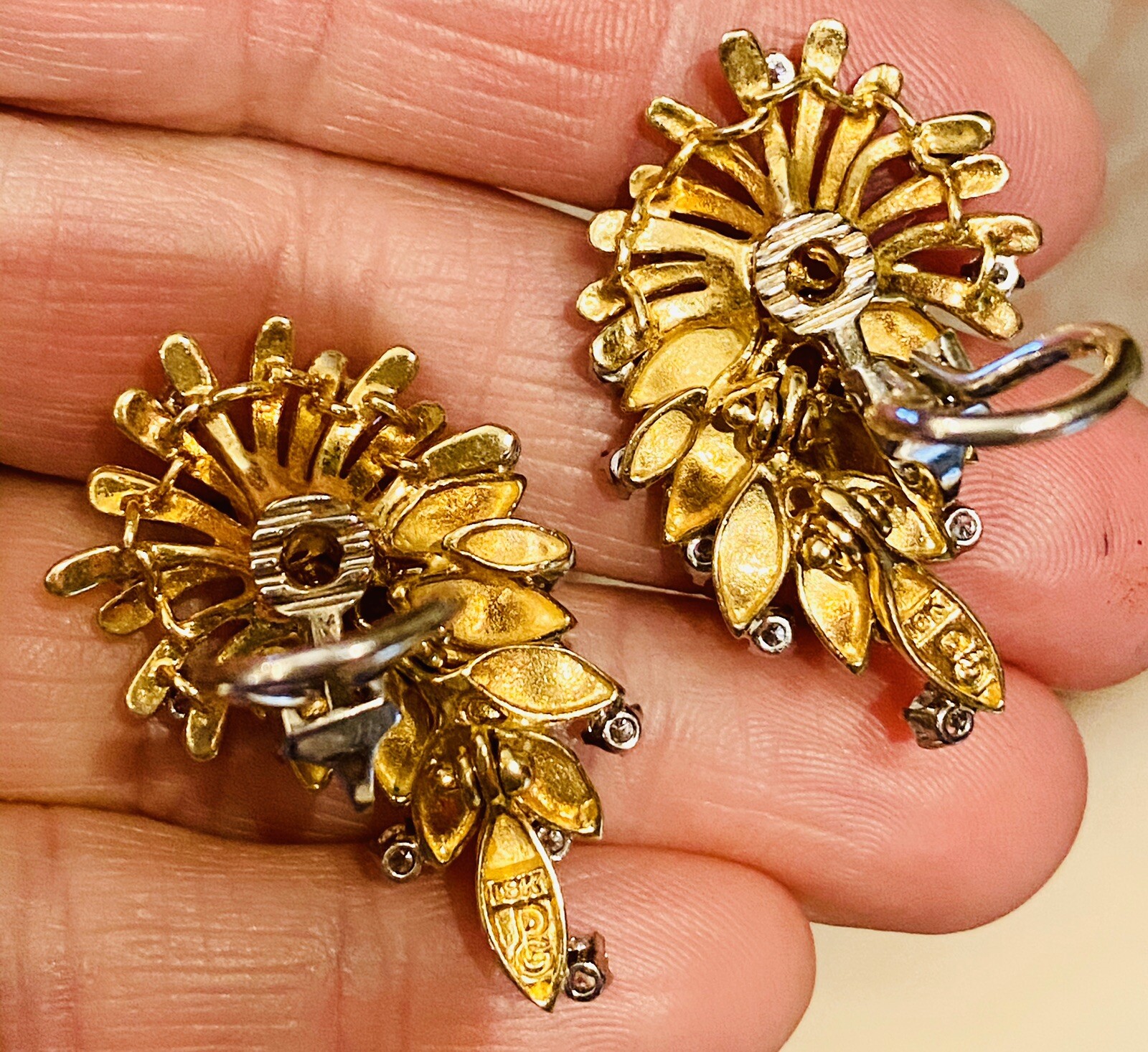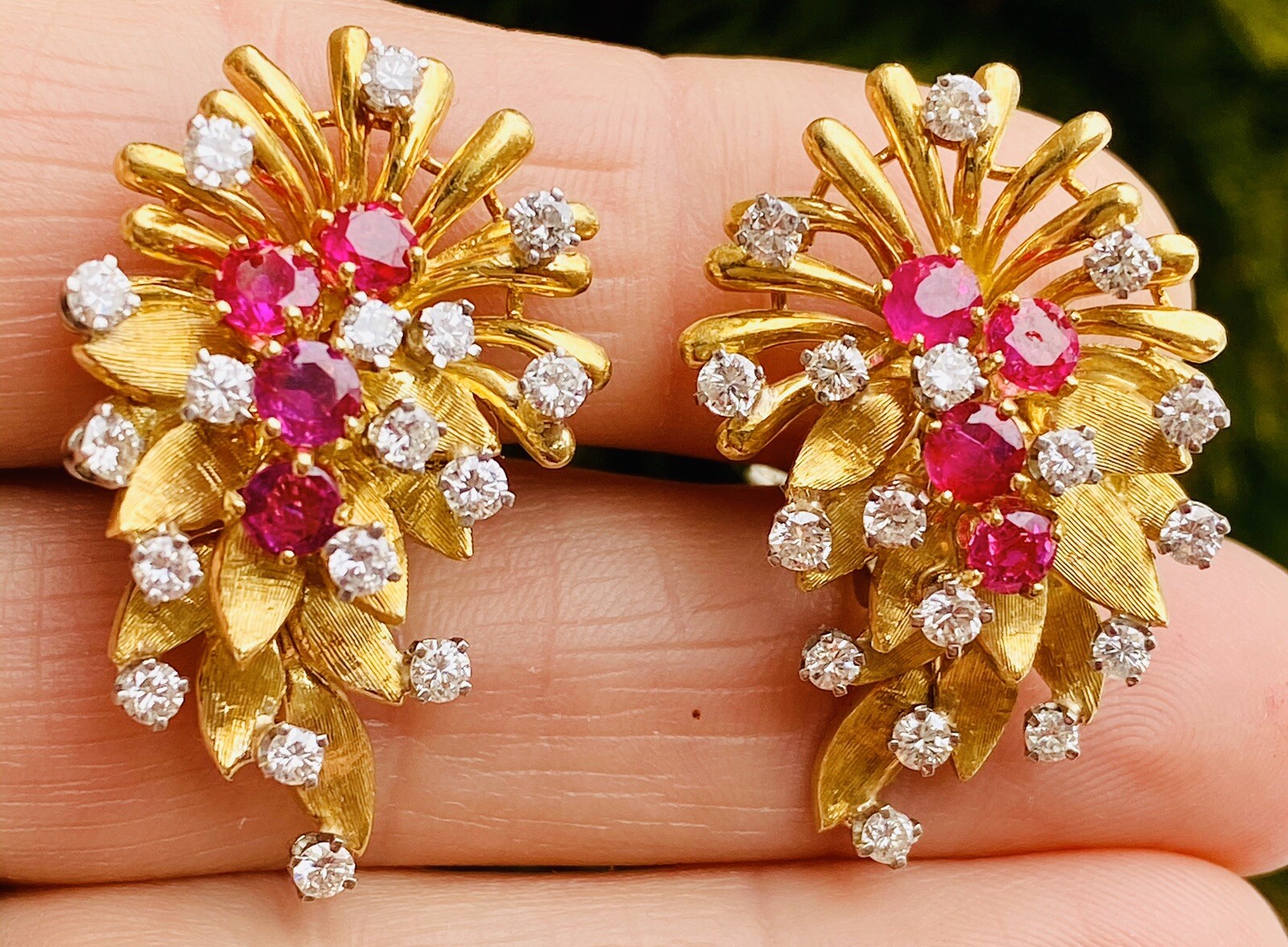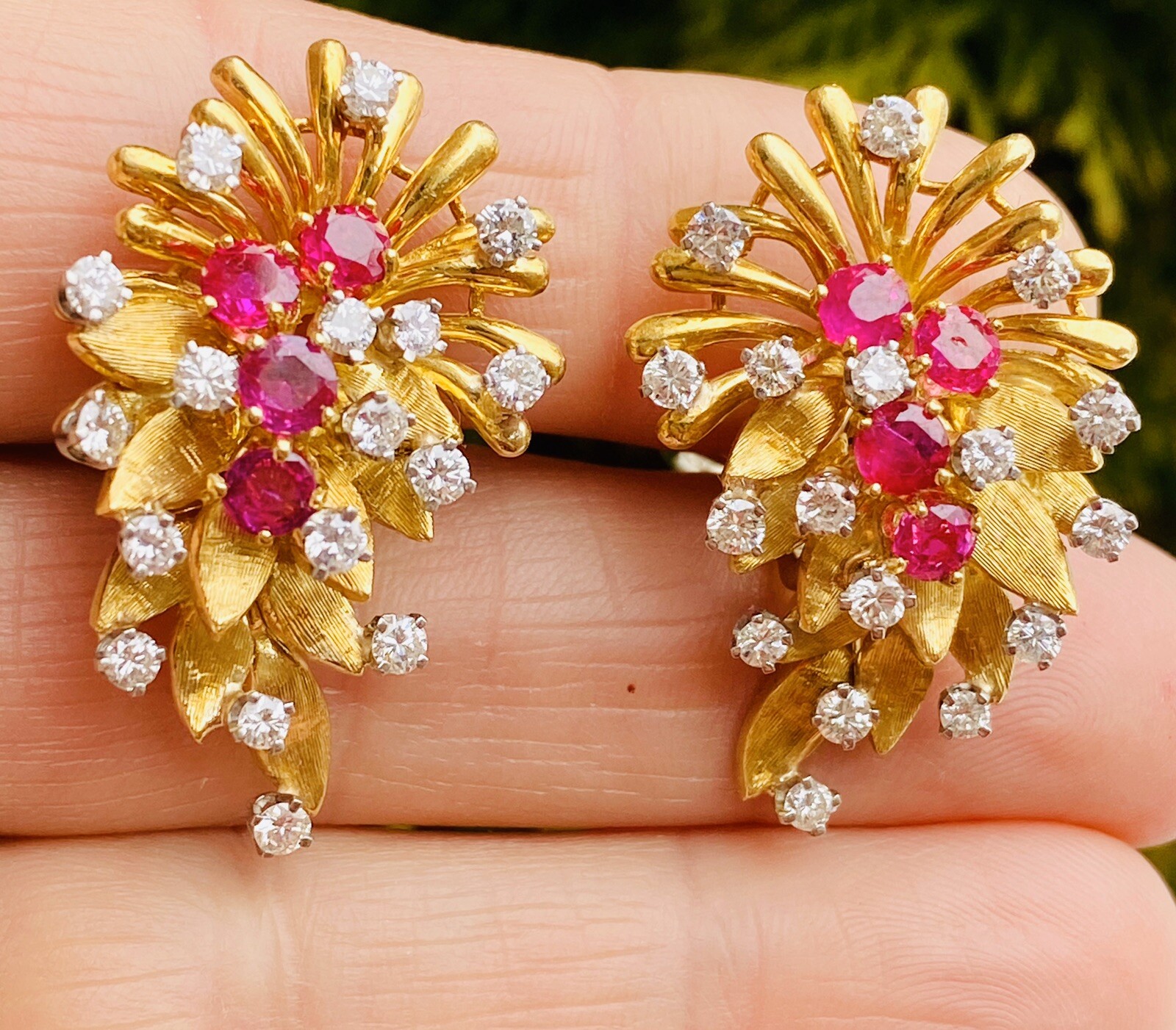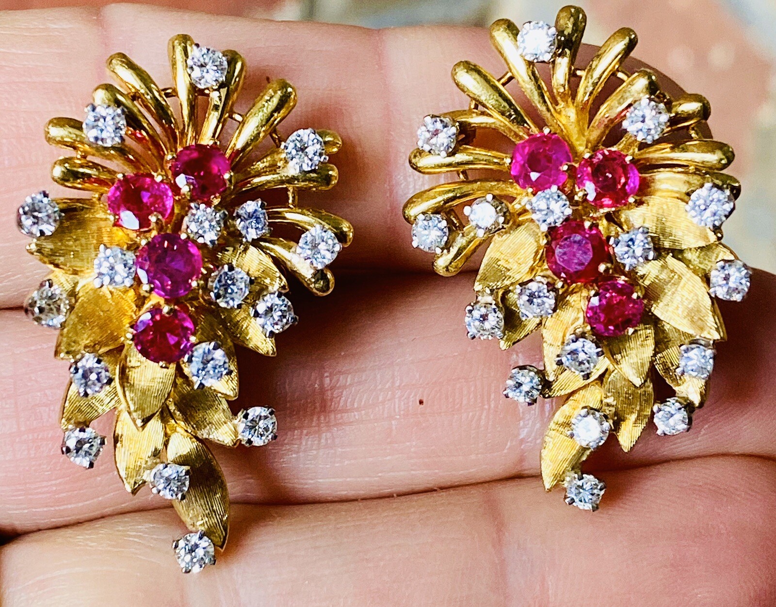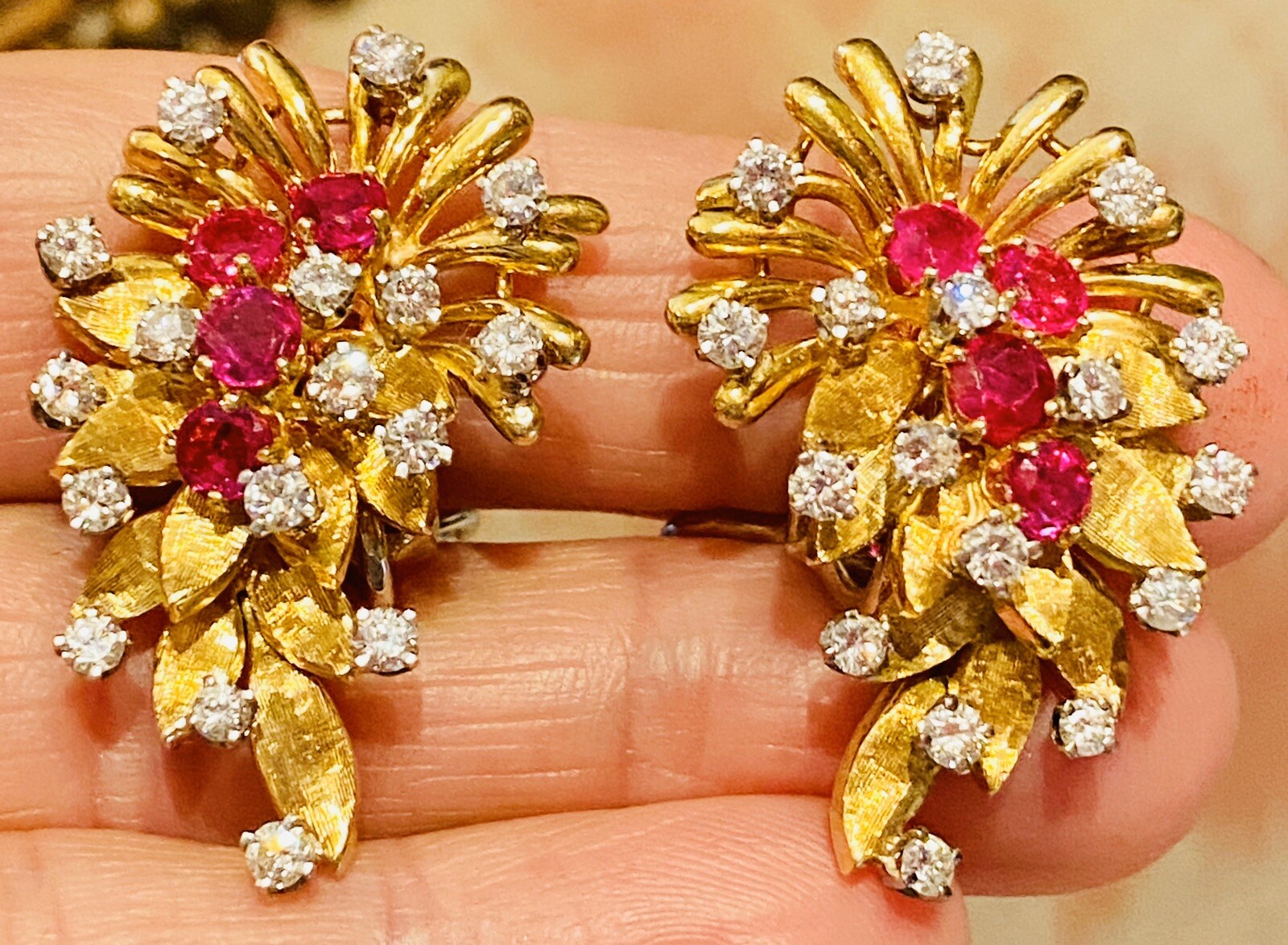 Stunning Vintage"DES EN FRANCE" French 18k Gold Ruby VS Diamond Earrings / Earclips