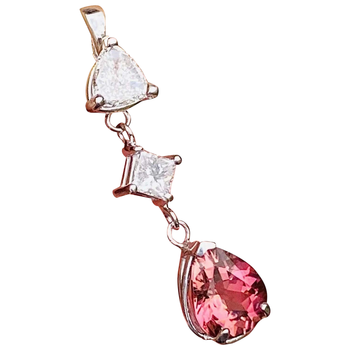 Vintage Estate 14k White Gold 2.32ct Diamond Pink Tourmaline Necklace Pendant
