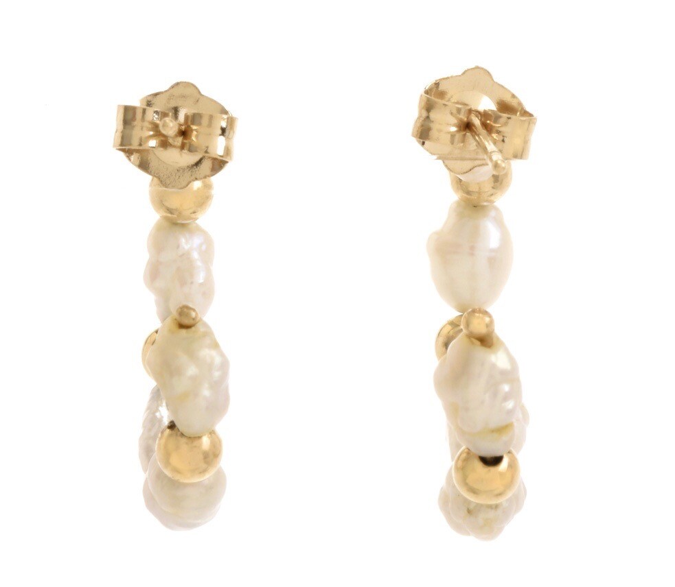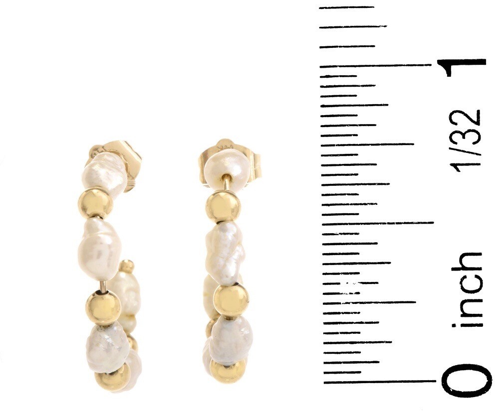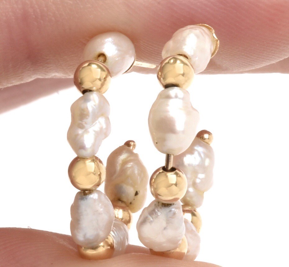 Vintage Estate 14k Gold Baroque Cultured Pearl Hoop Earrings