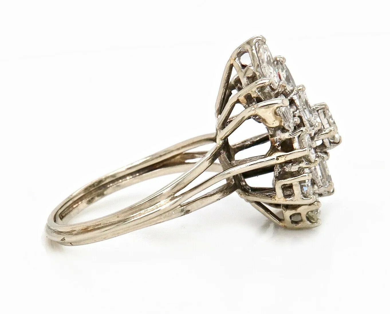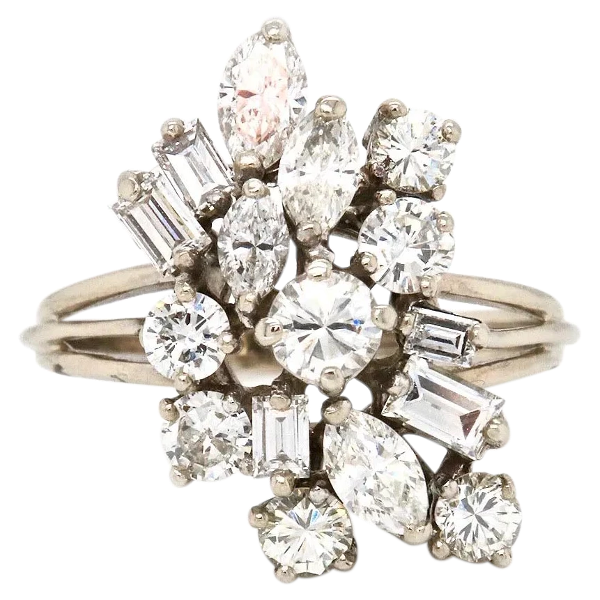 Vintage Estate 14k Gold Fancy 1.50ctw Baguette Marquise Diamond Cluster Ring