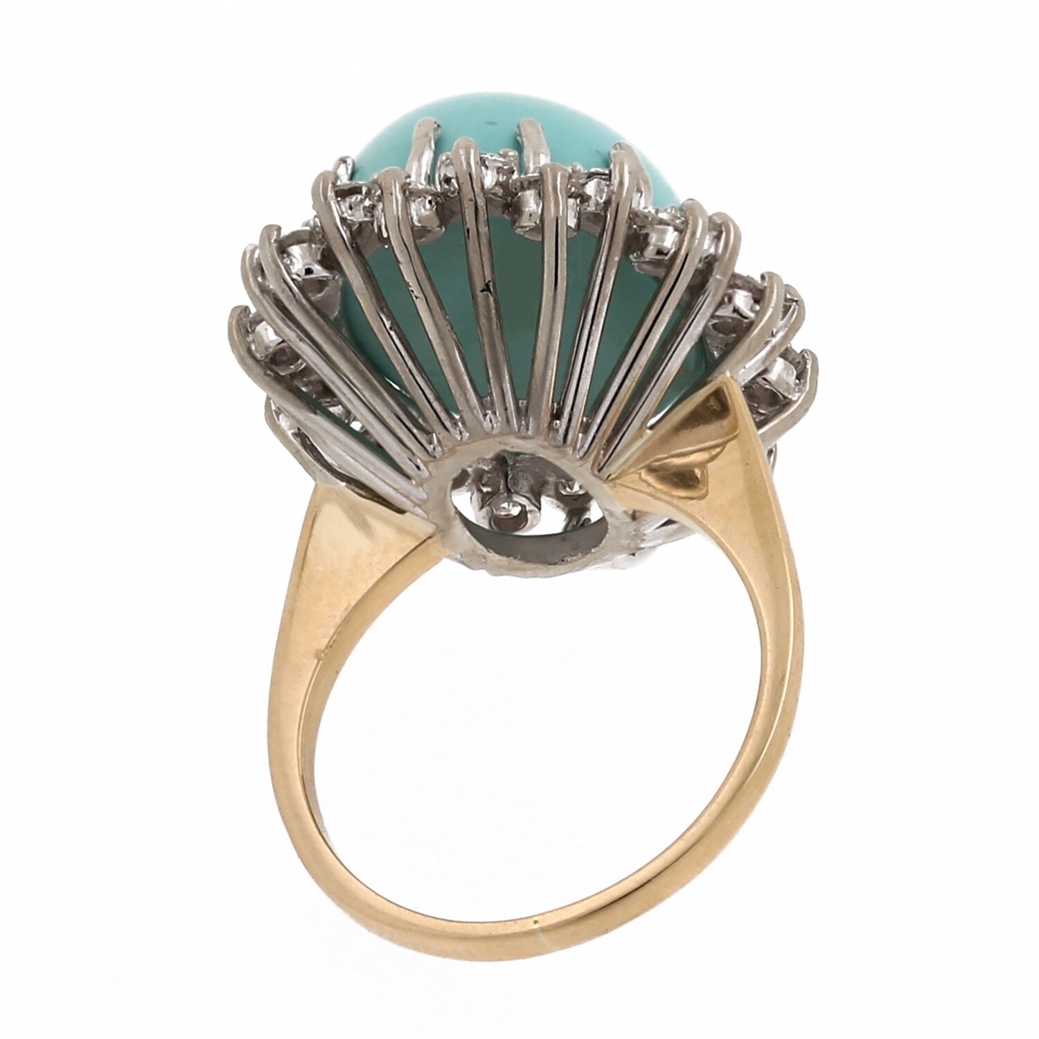 Vintage Estate 14k Gold Turquoise 1.08ct Diamond Halo Cocktail Ring