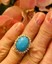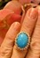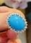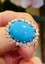 Vintage Estate 14k Gold Turquoise VS Diamond Halo Ring Retro