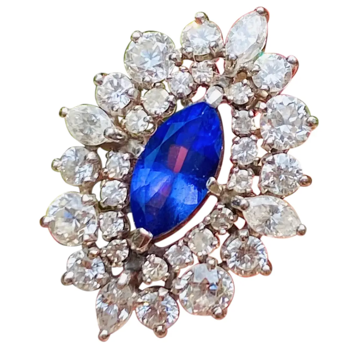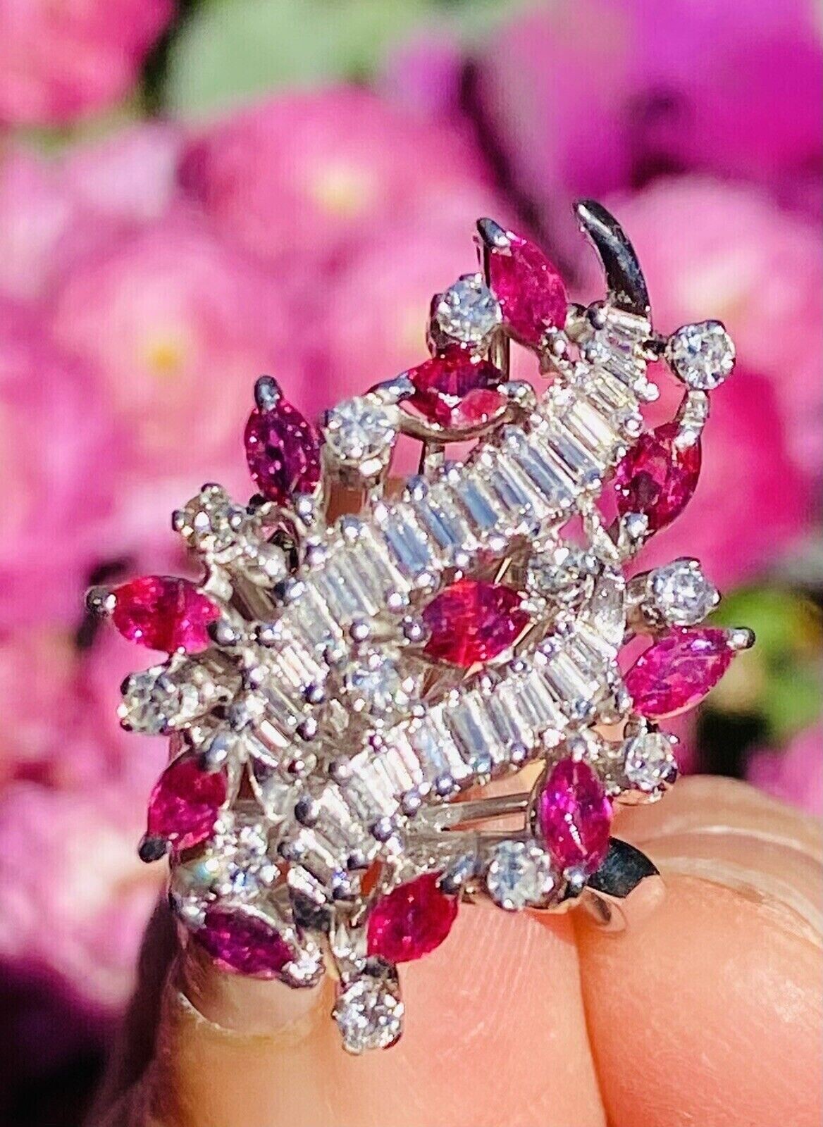 Vintage Estate 14k White Gold 2ct Ruby VS Diamond Cluster Cocktail Ring