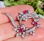 This marvelous piece of jewelry is crafted in beautiful 18K white gold featuring multiple diamonds (VS-2 to SI1 clarity with F-G color), with a combined weight of approximately 2.10 carats, as well as three genuine rubies, with a combined weight of approximately 0.60 carats. These round cut stones are prong set in a beautiful floral brooch.