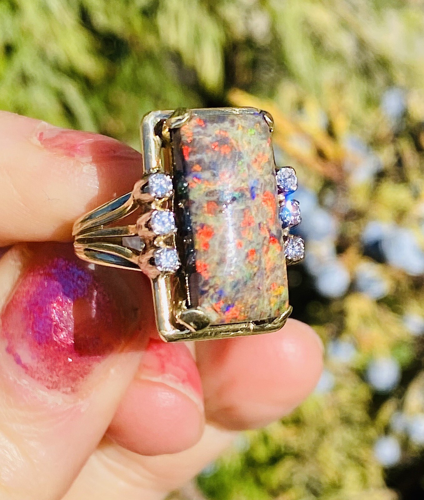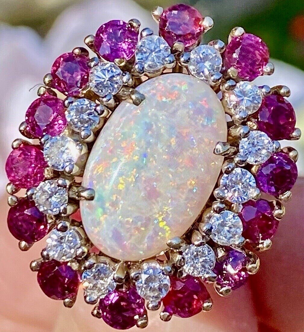 Vintage Estate 14k Gold 5ct Opal Ruby Diamond Cocktail Ring