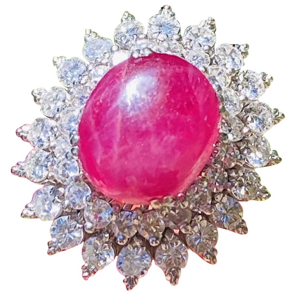 Vintage Estate 18k White Gold 10ct Ruby Cabachon Diamond Cocktail Ring