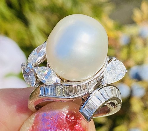 Vintage Estate 18k Gold South Seas Baroque Pearl 1.75ct Diamond Cluster Ring