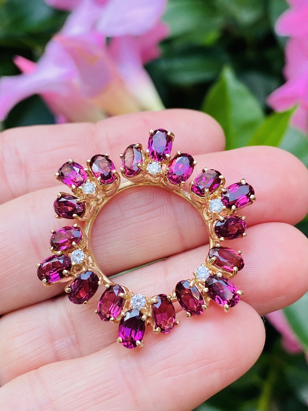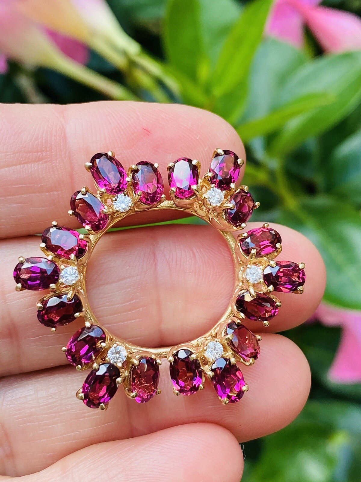 Striking Vintage 14k Gold Diamond Pink Tourmaline Pendant for Necklace
