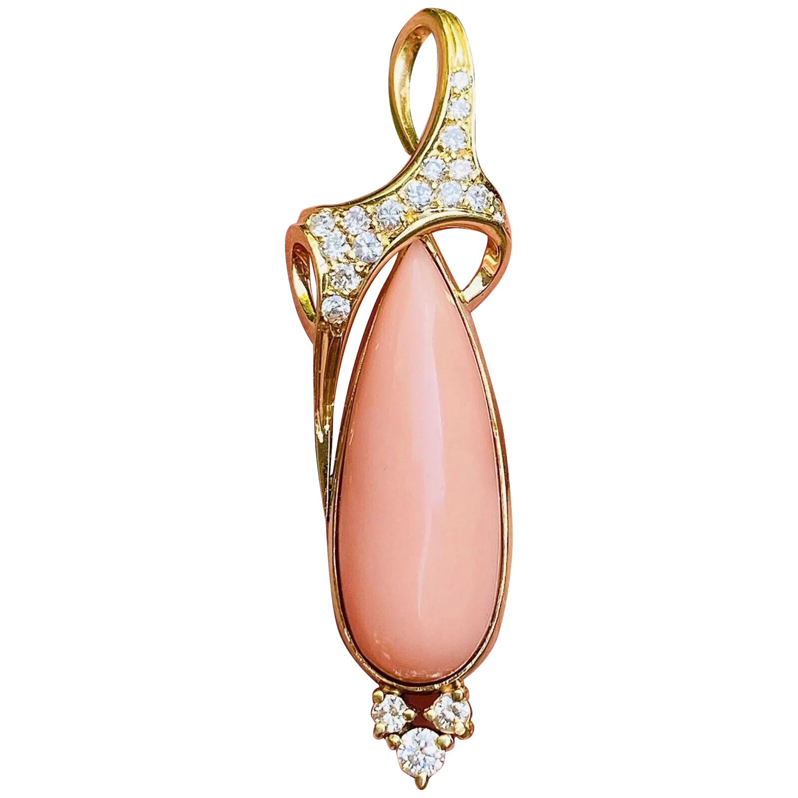 Vintage Estate 14k Gold Salmon Pink Coral Diamond Necklace Pendant