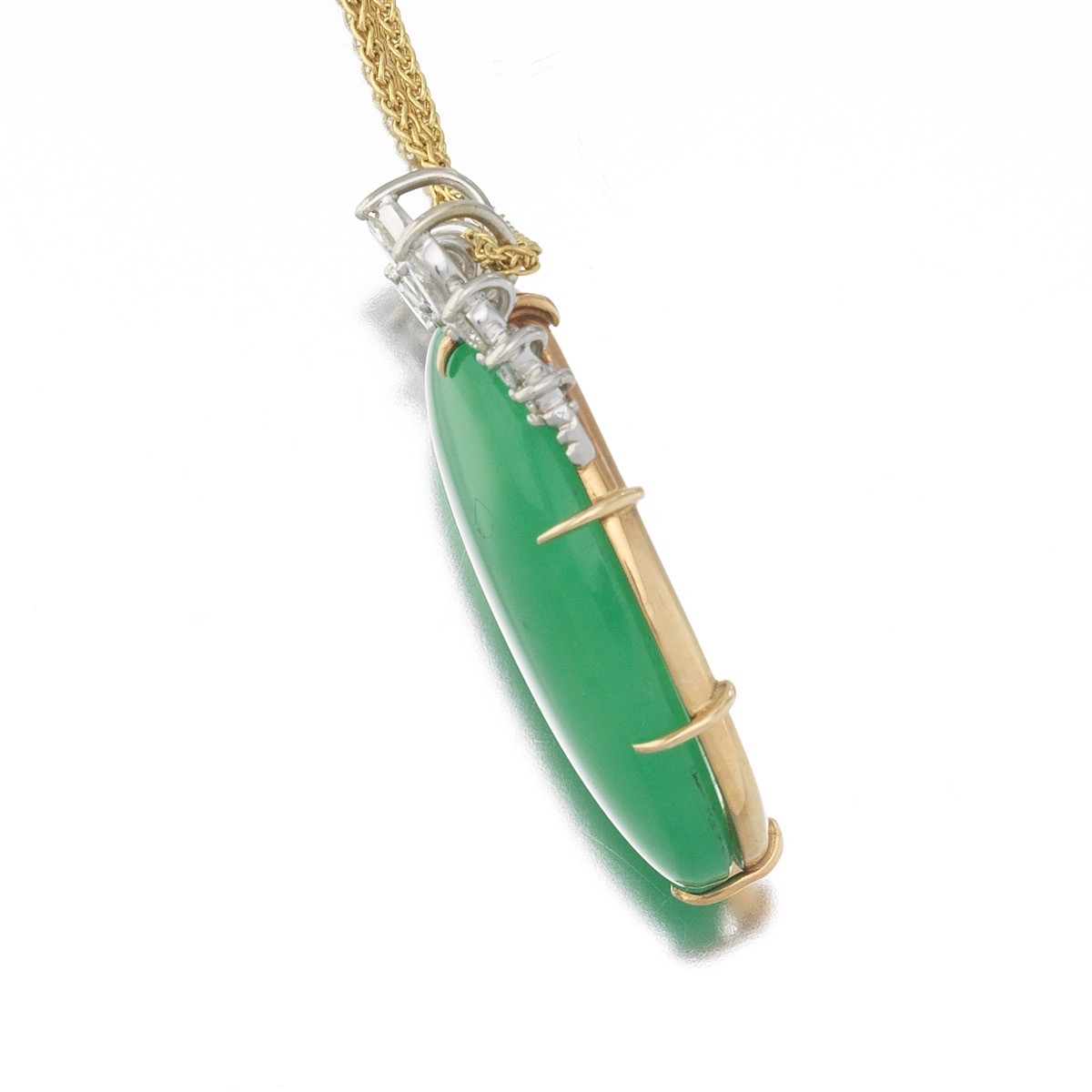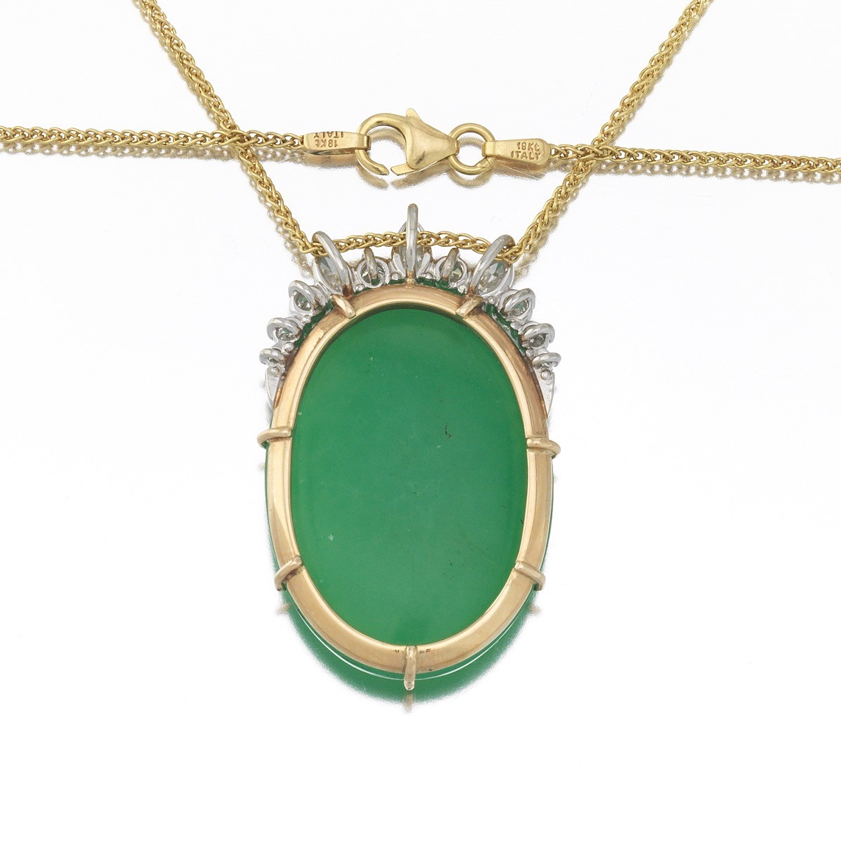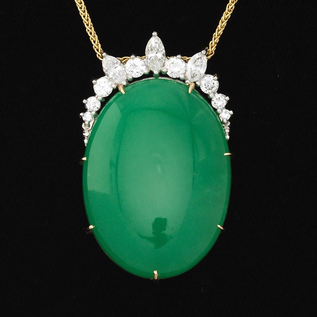 Striking platinum and 18k yellow gold pendant set with green cabochon 27mm x 22mm x 6.92mm,