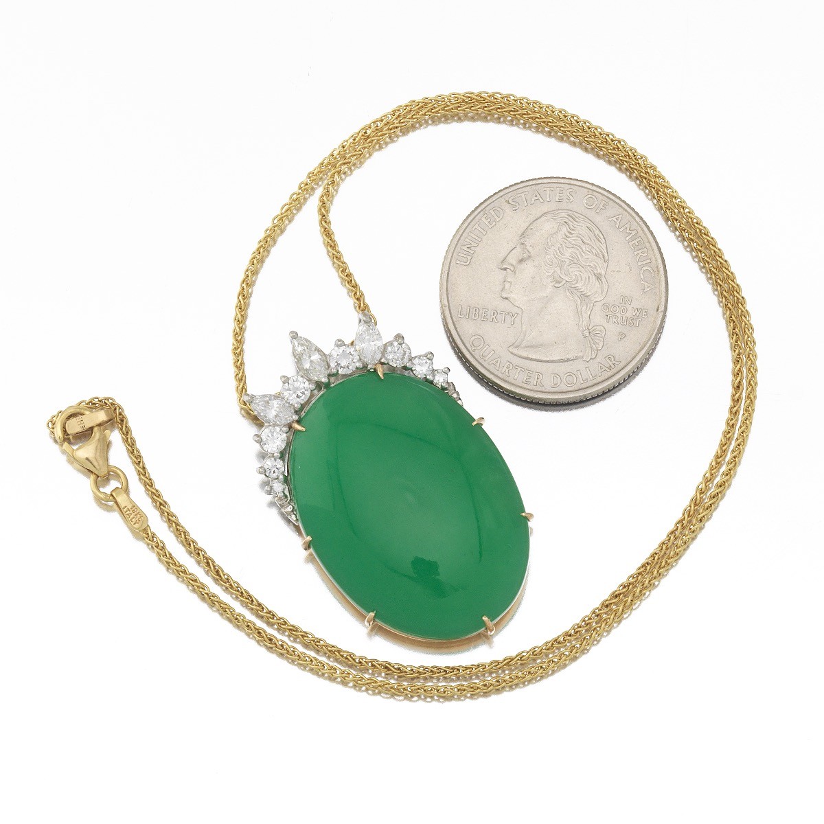 Stunning 18k Gold Platinum 1.50 VS Diamond Chrysoprase Necklace Pendant