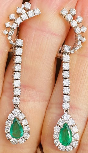 Gorgeous Vintage Estate 18k White Gold Turquoise Cabachon Blue Sapphire Diamond Drop Dangle Earrings.