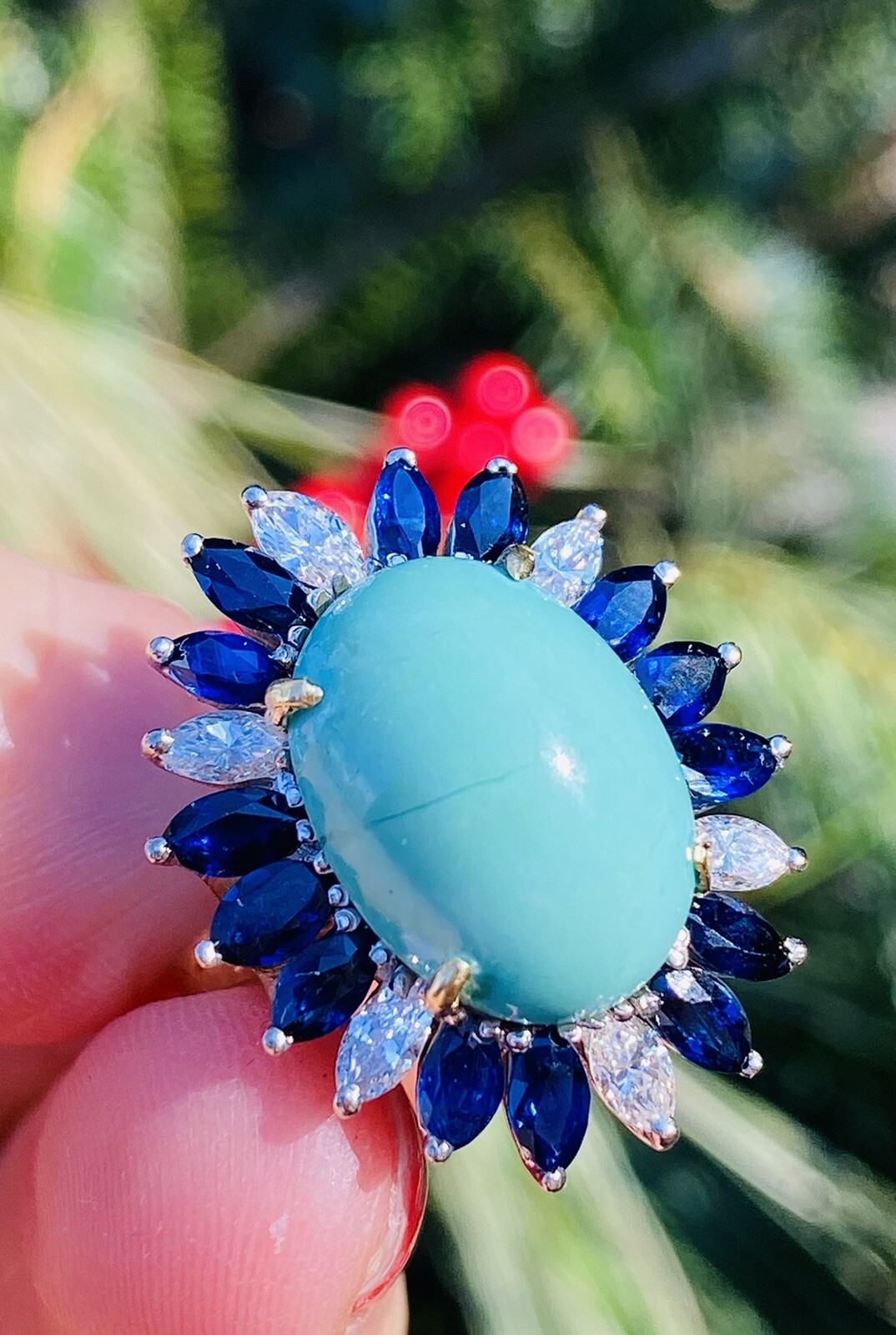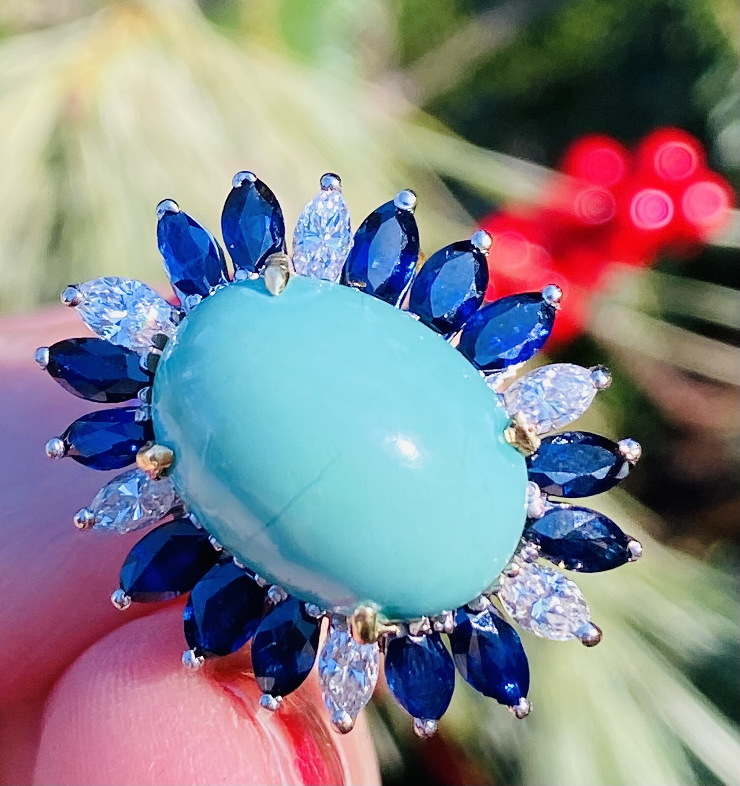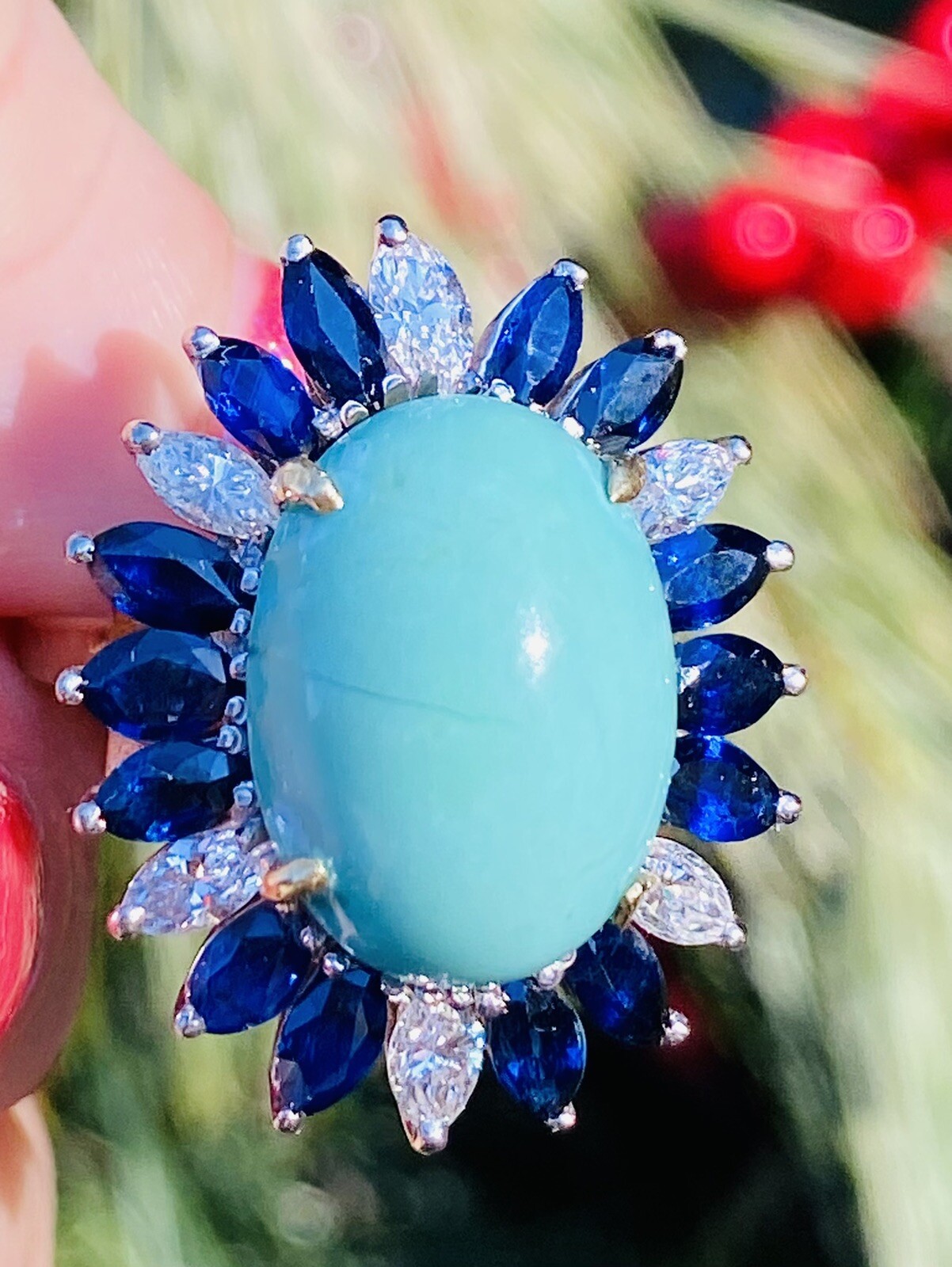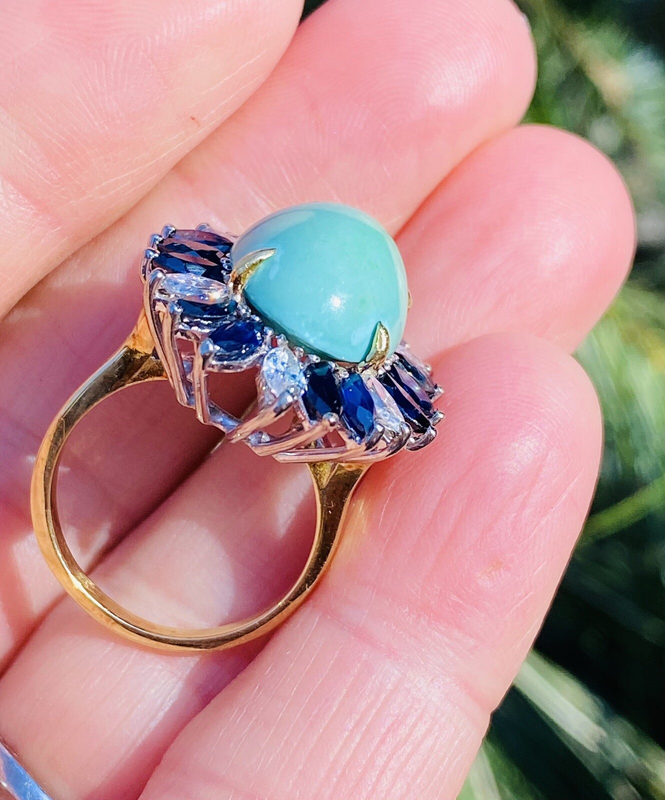 Vintage Estate 18k Gold Turquoise Sapphire Diamond Ring Retro