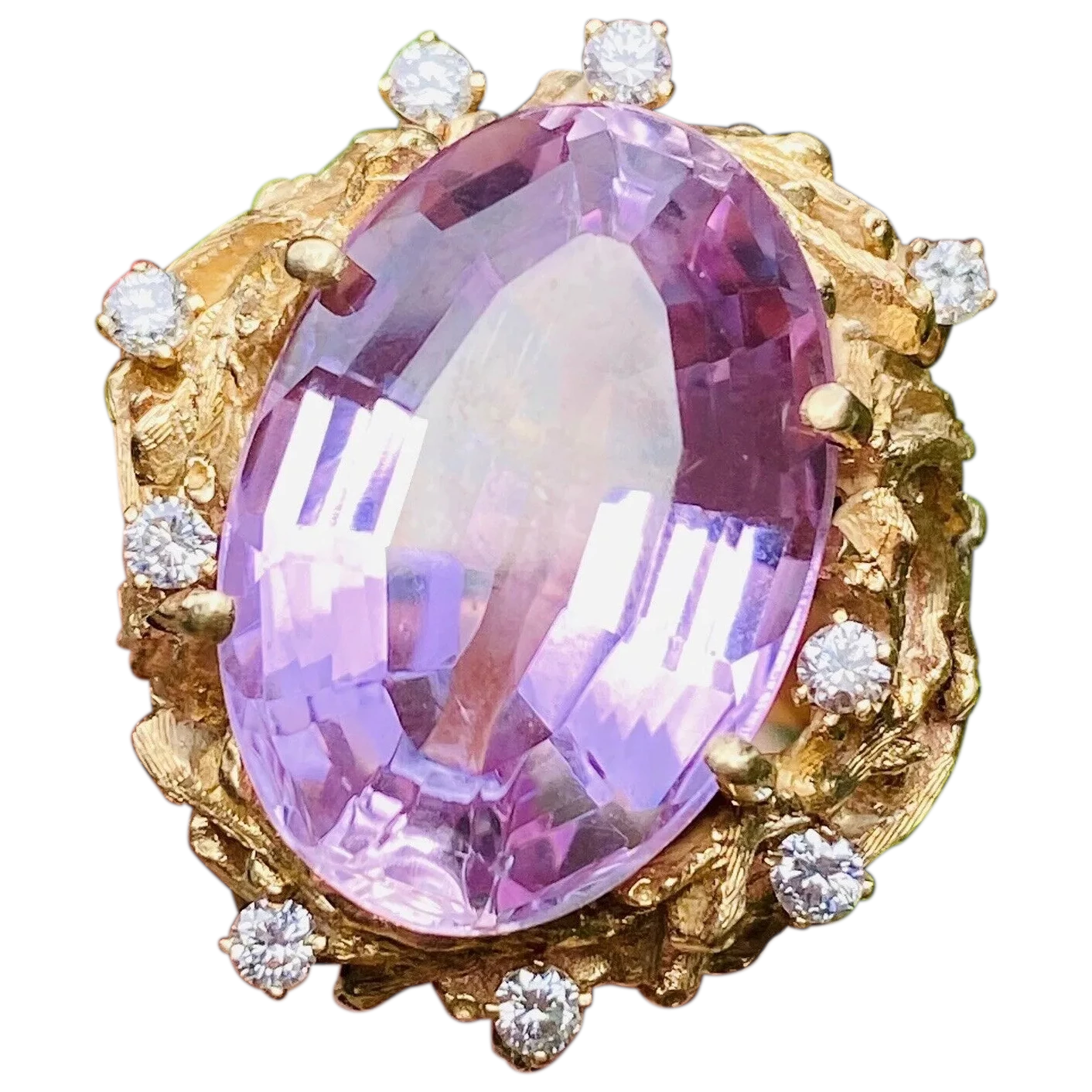 Vintage Estate 18k Gold VS Diamond Pink Tourmaline Rubellite Cocktail Ring