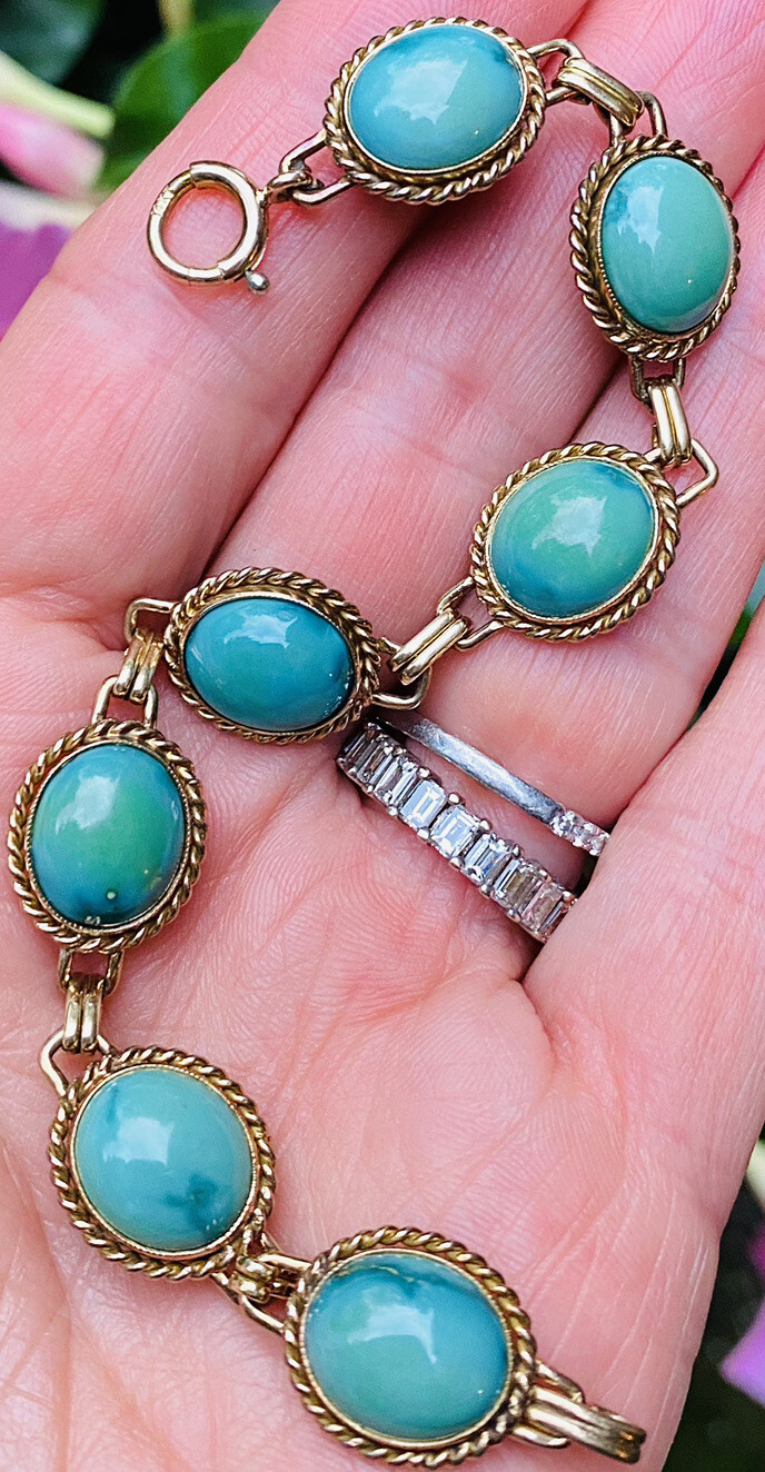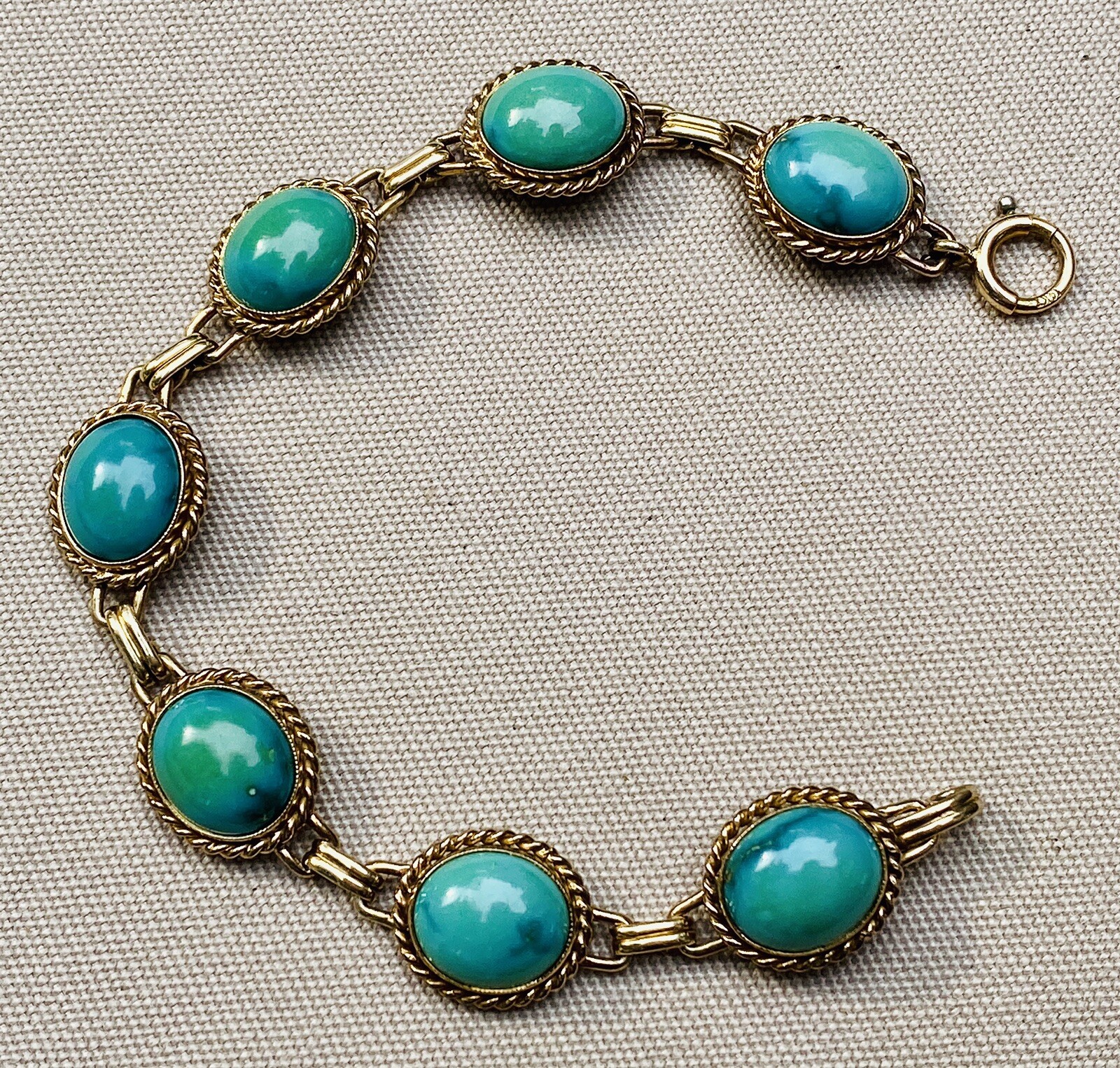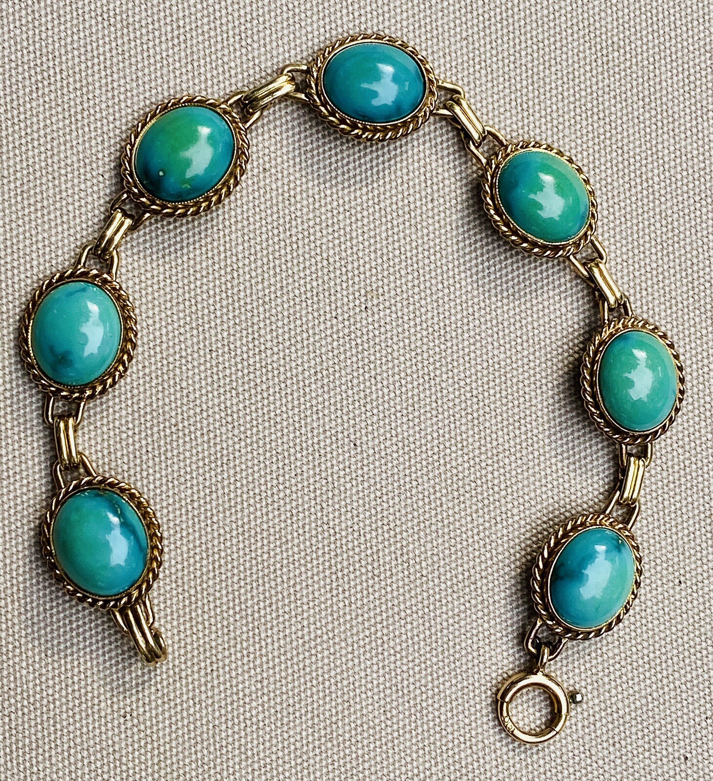 Vintage Estate Large 1950s 14k Turquoise Cabachon Bracelet