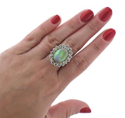Impressive 16 Carat Opal VS Diamond 14k Gold Cocktail Ring