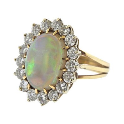 Vintage Estate 3.00Ct VS Diamond Huge Opal 14k Gold Statement Cocktail Ring