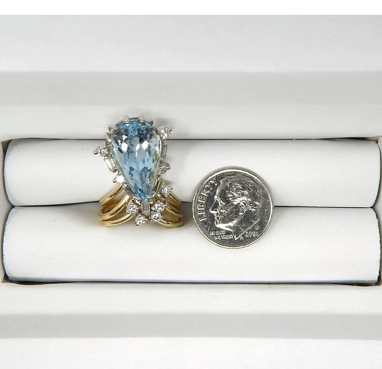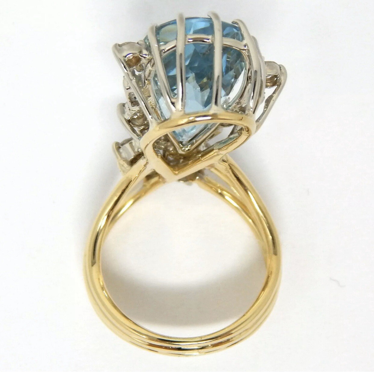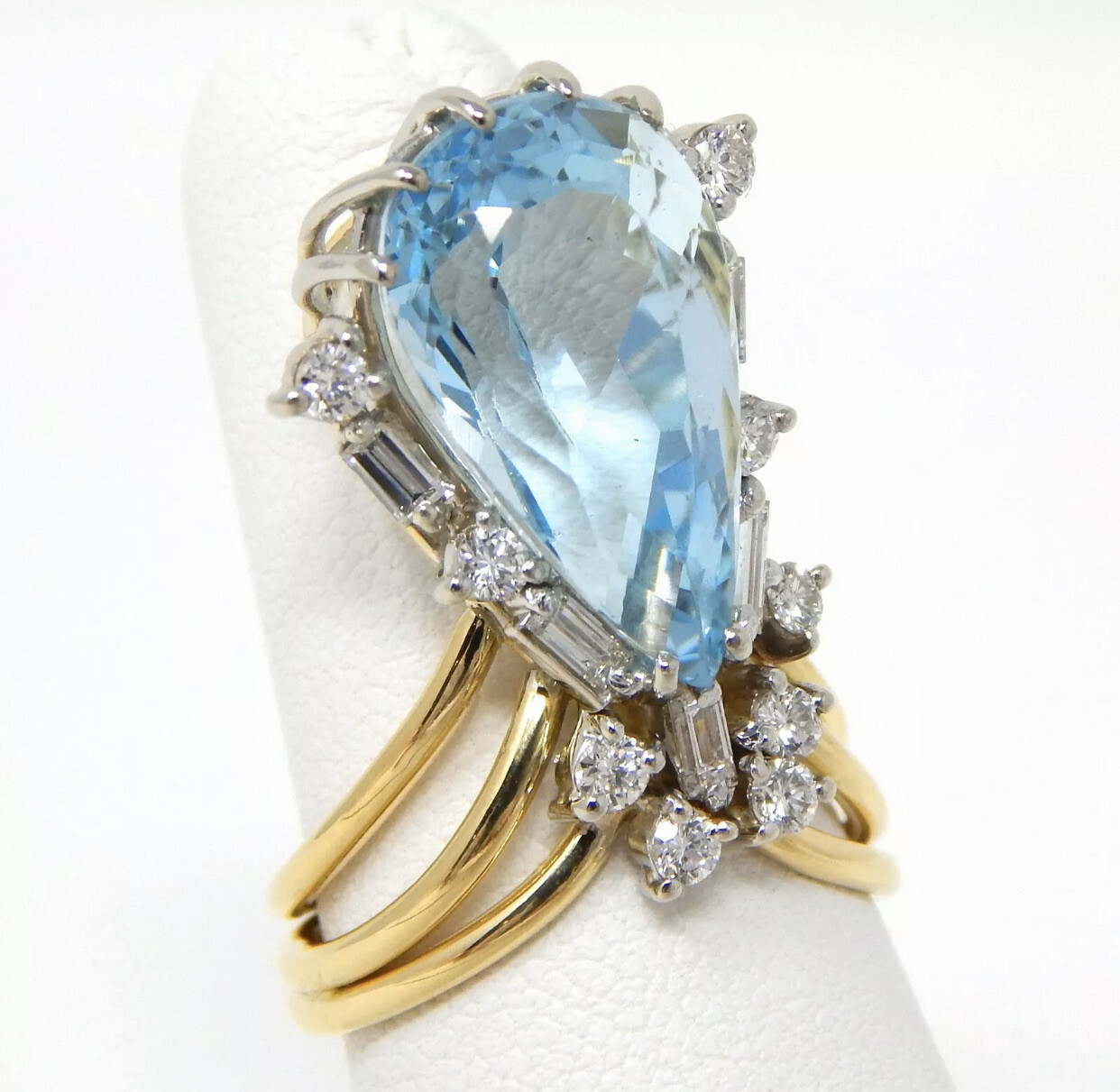 Stunning Vintage Estate Large 18k Gold 7.80 ct Diamond Aquamarine Ring