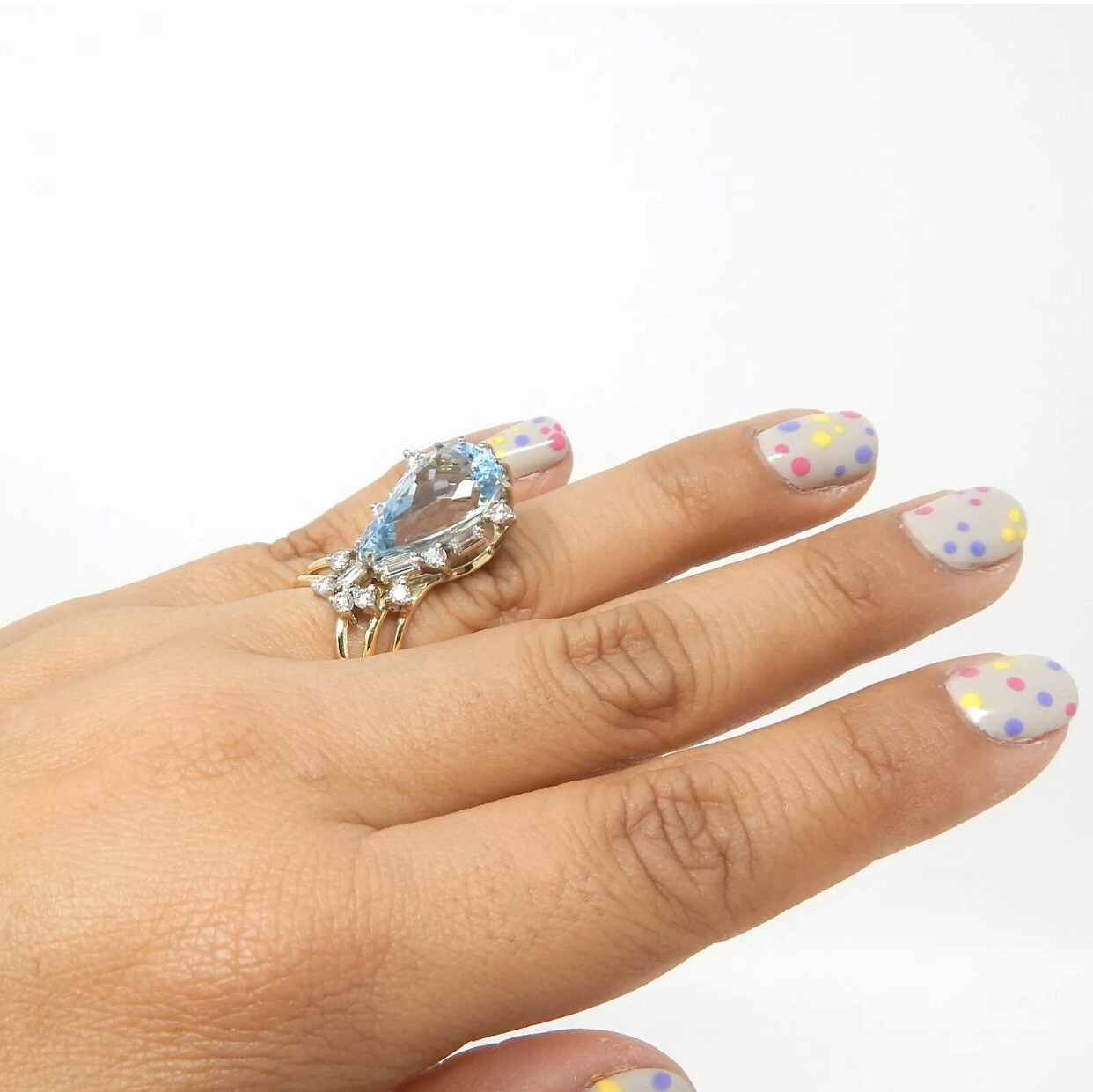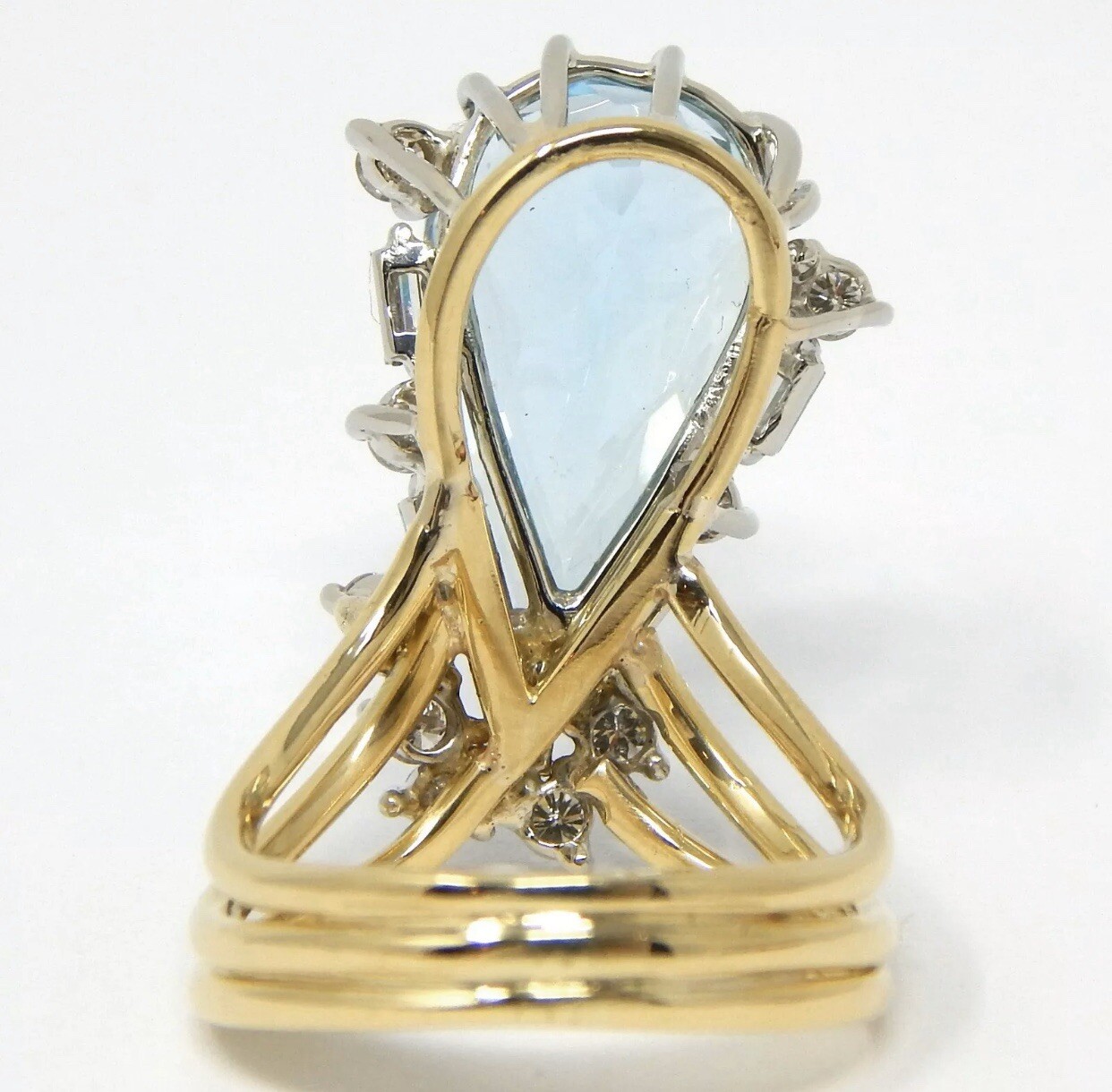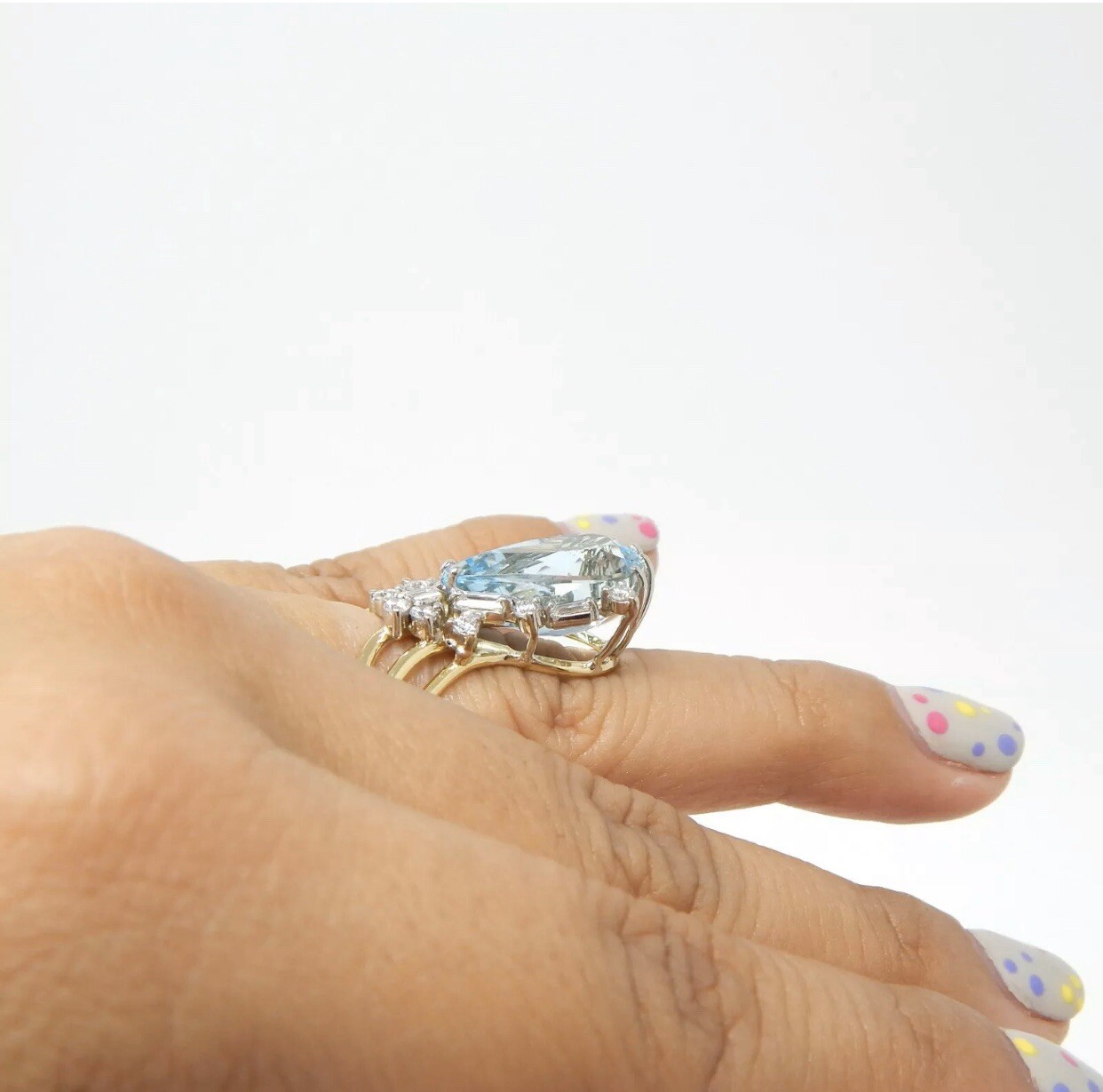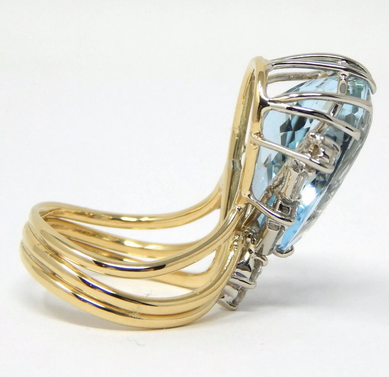Stunning Vintage Estate Large 18k Gold 7.80 ct Diamond Aquamarine Ring