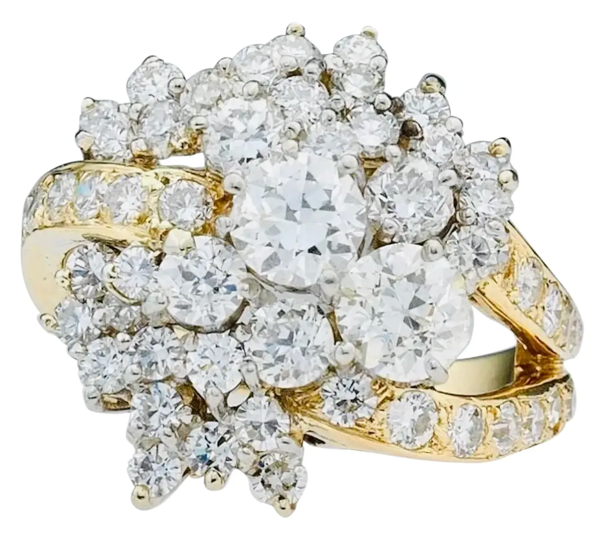 Vintage Estate 18k Gold 4.00ct Brilliant Diamond Cluster Cocktail Statement Ring