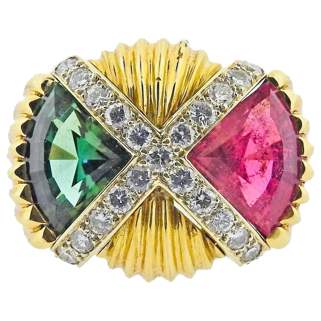 Vintage Estate Retro 18k Gold Vintage Retro pink Tourmaline Diamond Cluster Ring