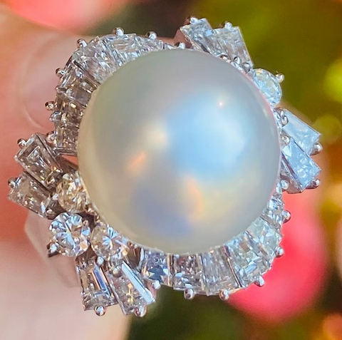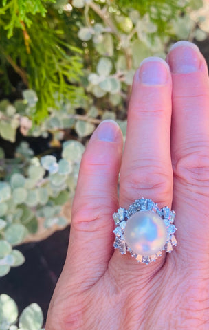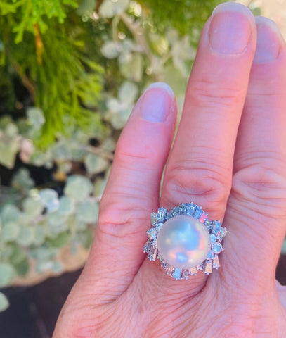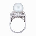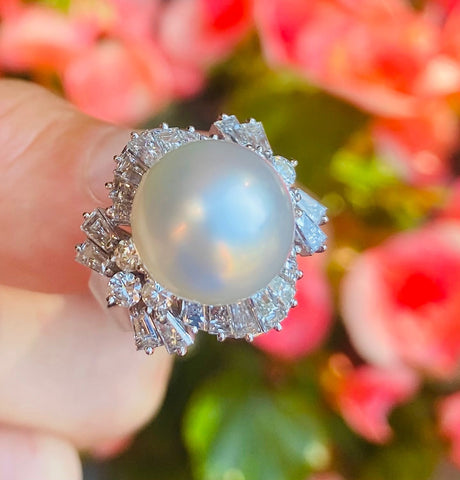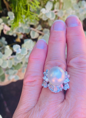 Vintage Estate Platinum Diamond South Seas Pearl Diamond Cocktail Ring