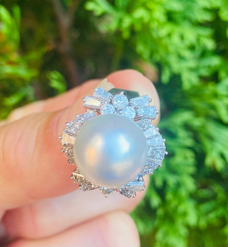 Vintage Estate Platinum South Seas Pearl Diamond Cocktail Ring