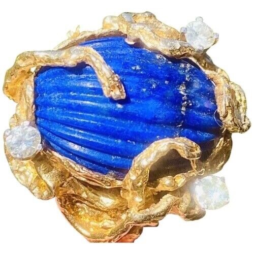 Vintage 14k Gold Estate Lapis Diamond Freeform Brutalist Ring