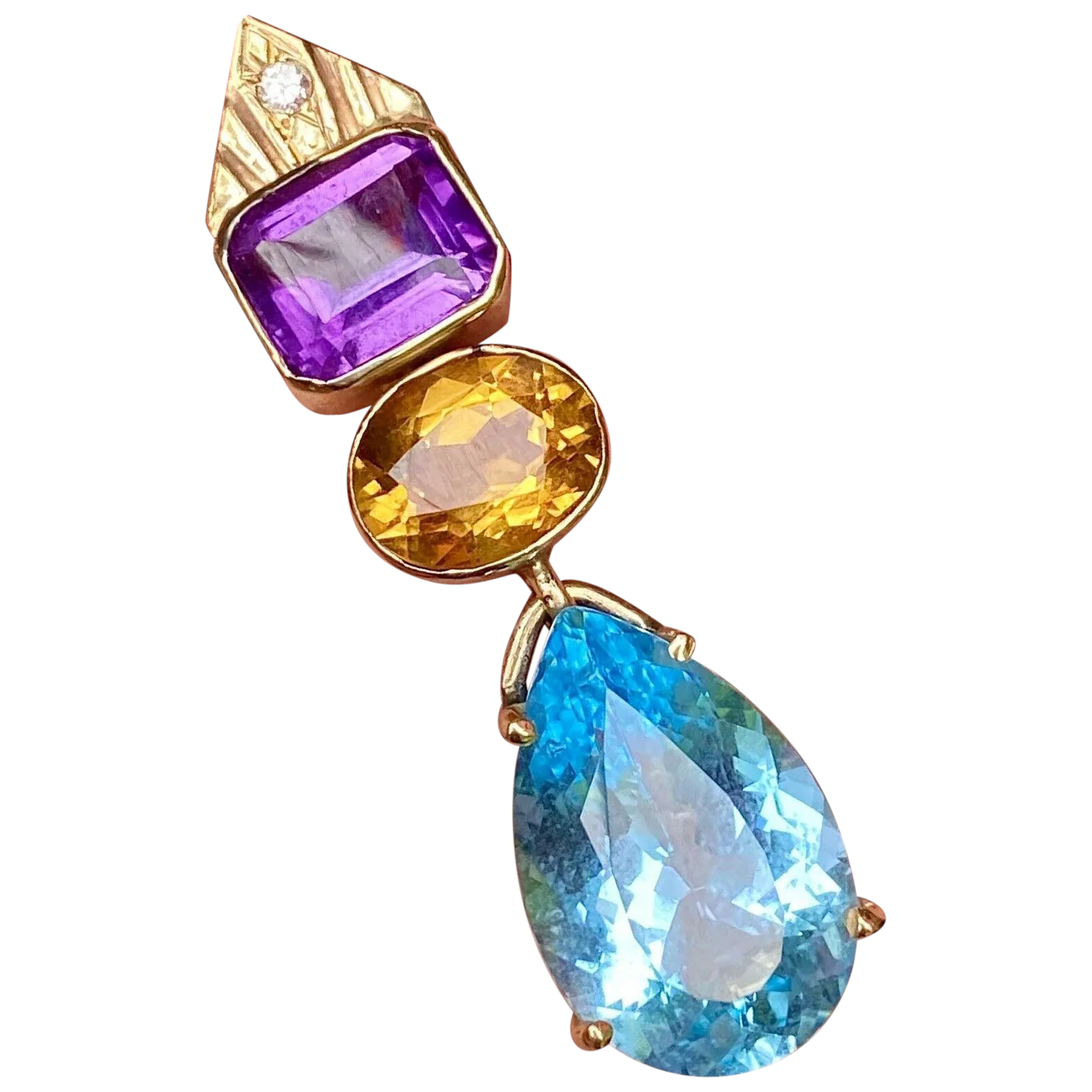 Vintage Freeform Retro 14K Gold 2ct VS Diamond Slider Necklace Pendant