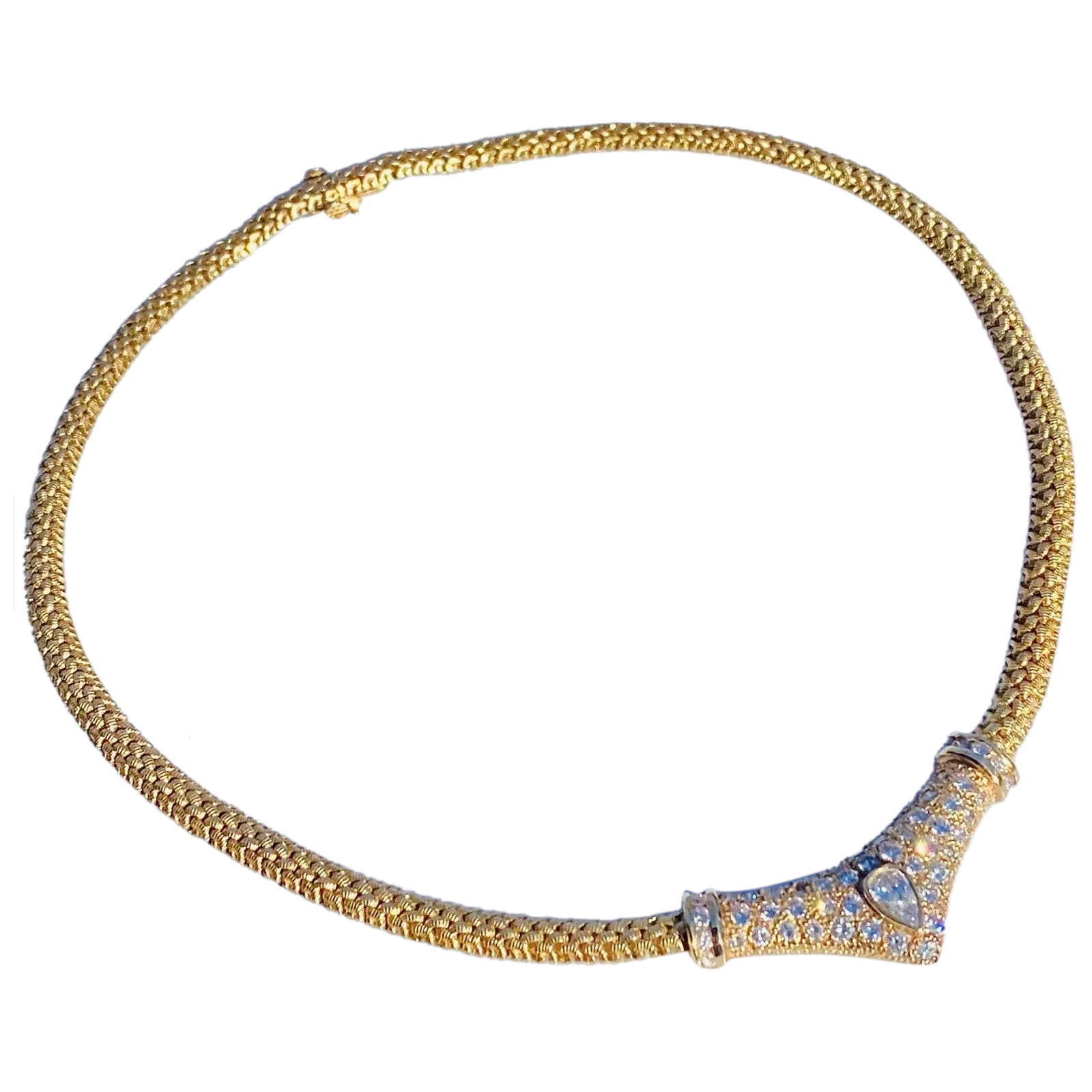 Vintage Estate Retro 14K Gold 1.80ct Diamond Slider Necklace Pendant