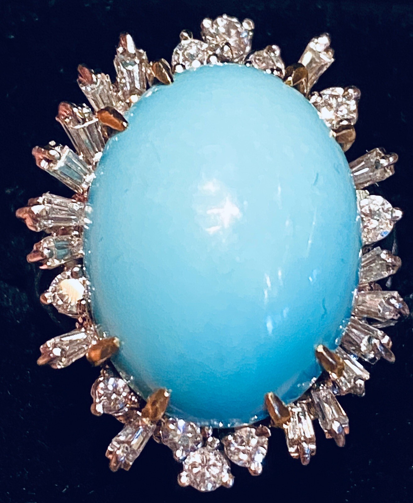 Large Heavy Estate Vintage 14k 25ct Turquoise Diamond Halo Ballerina Ring