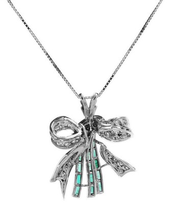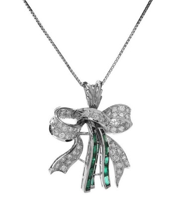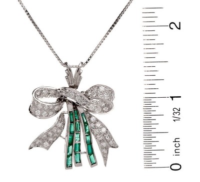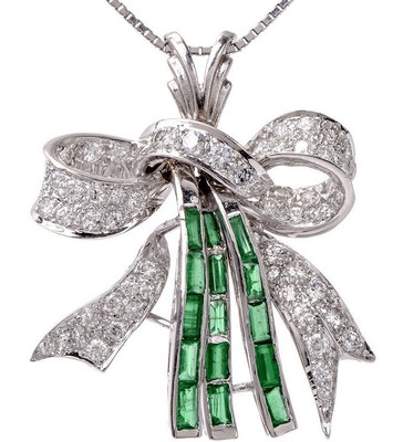 Stunning Vintage 4.20 Carat Diamond & Emerald Platinum Bow Dangle Pendant