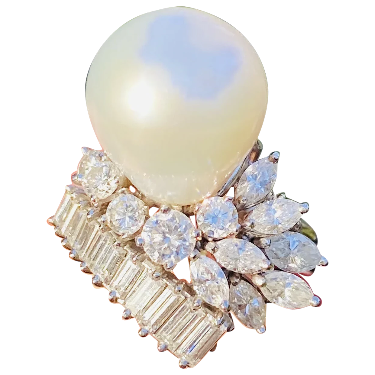 Vintage Estate Platinum 2.00ct Marquise Diamond 12.5mm South Seas Pearl Ring