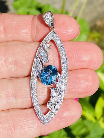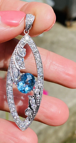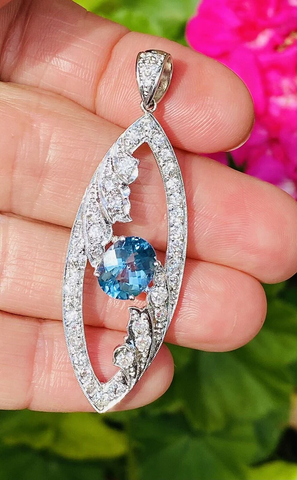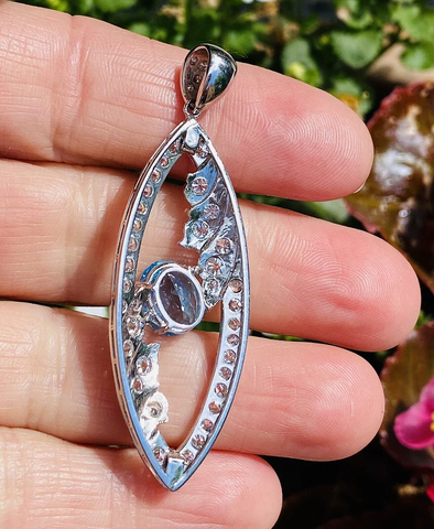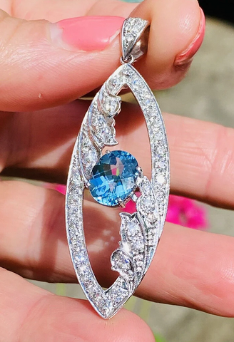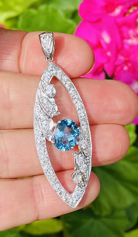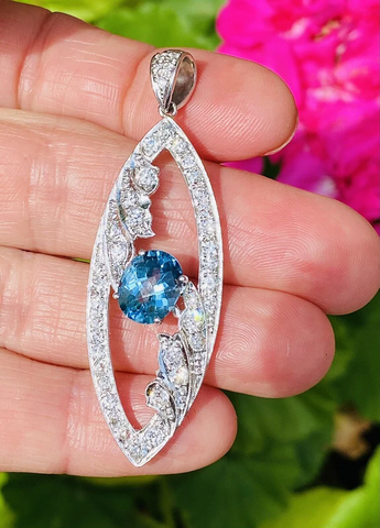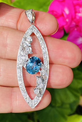 Vintage Midcentury Platinum 5.0ct G VS Diamond Blue Topaz Necklace Pendant