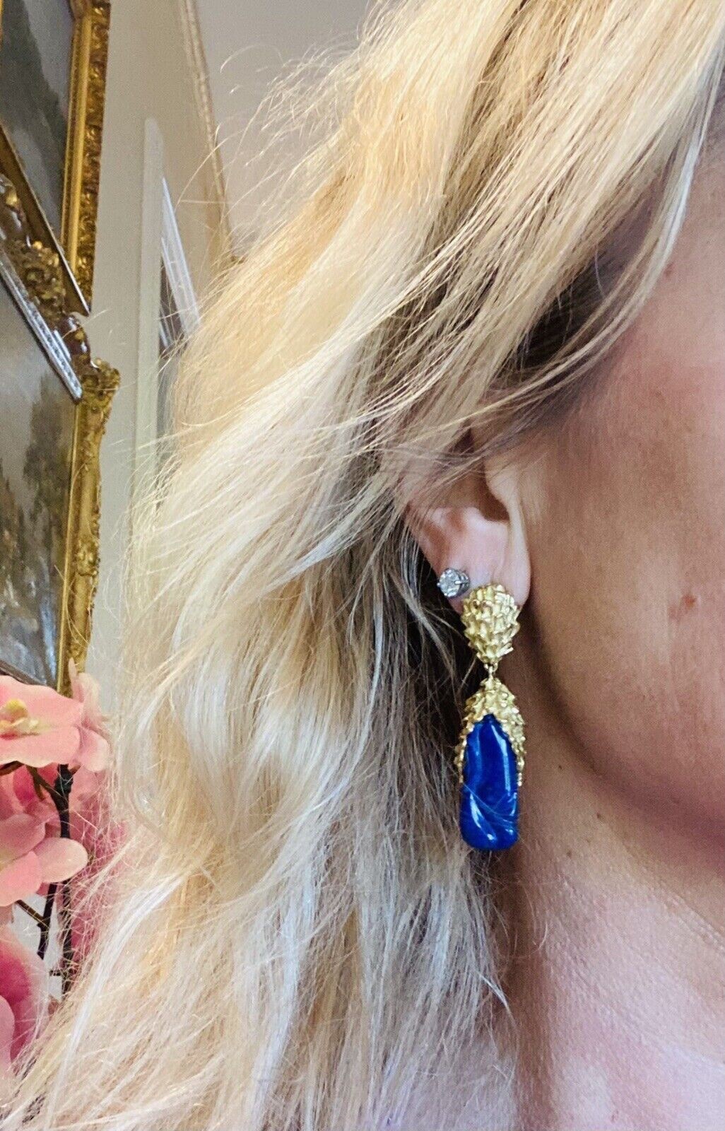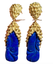 Vintage Retro 18K Gold Lapis Lazuli Pendant Drop Earrings