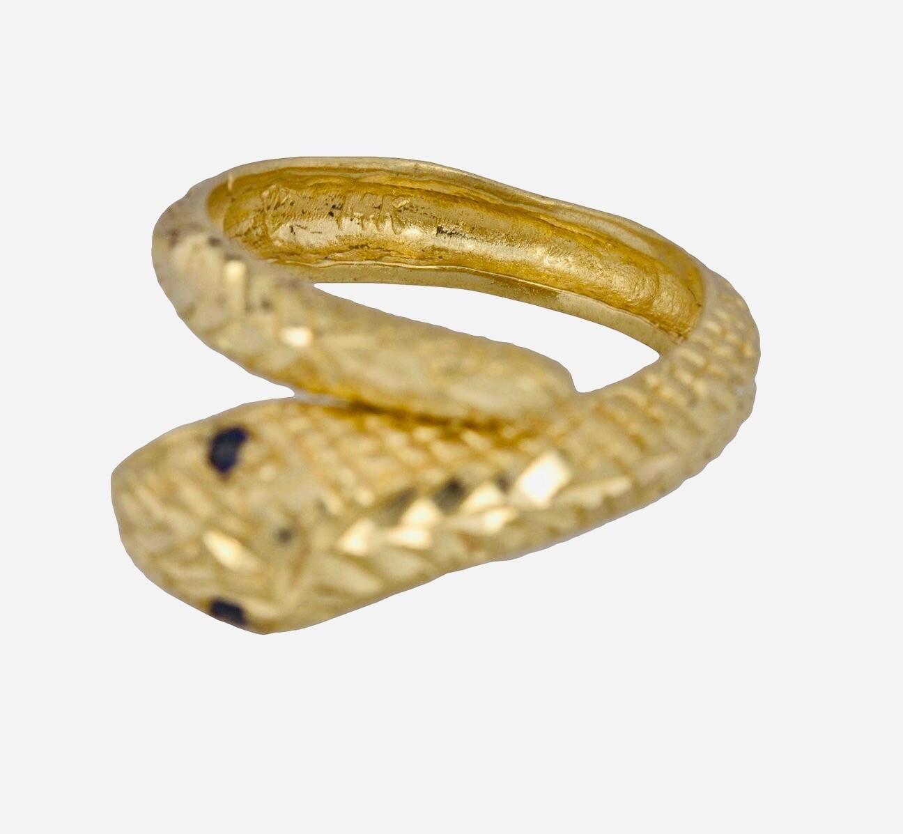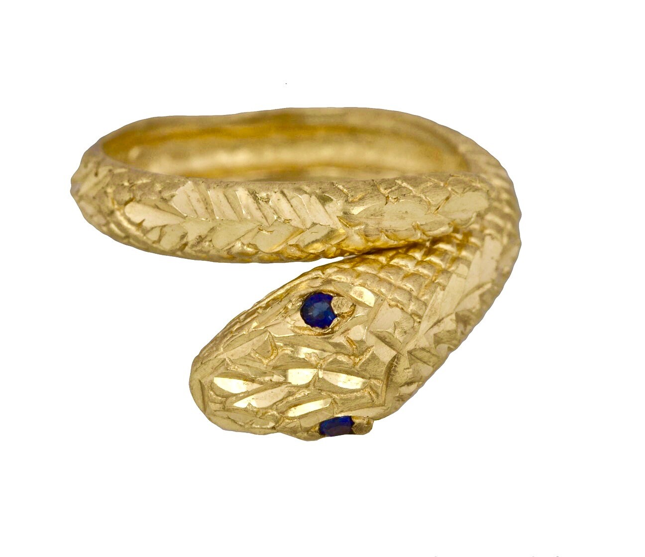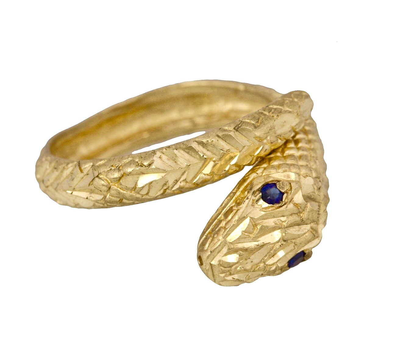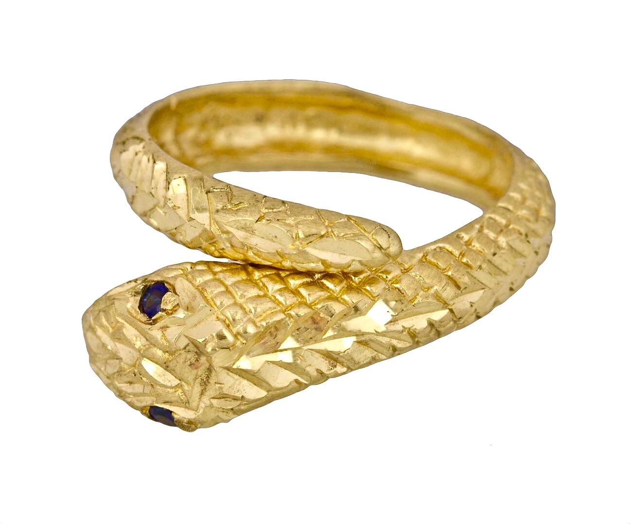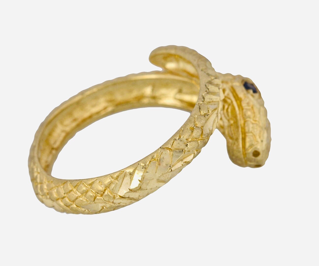Vintage Retro Chic Estate 14K Gold Diamond Cut Blue Sapphire Serpent Snake Ring