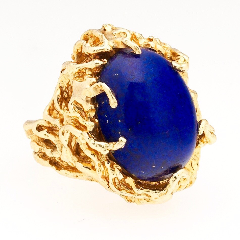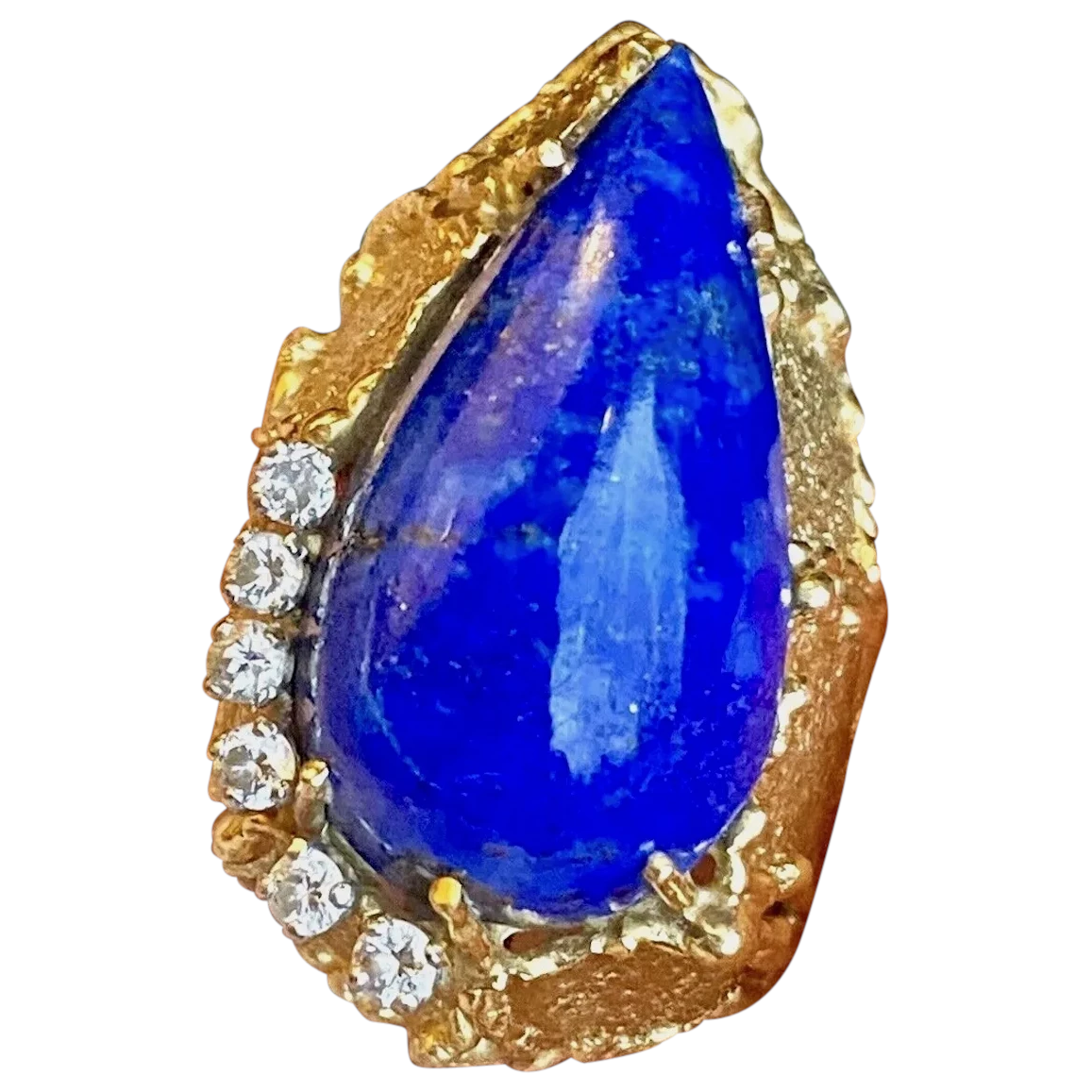 Vintage 1960s Retro 18k Gold George Weil Brutalist Modernist Diamond Lapis Ring