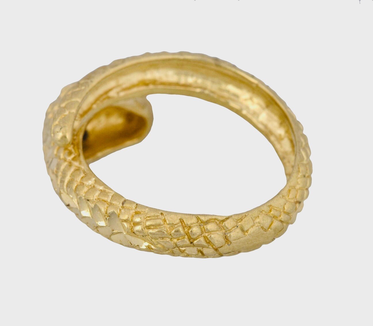 Super cool and chic diamond cut 14k gold (yellow) serpent style coil ring set with two