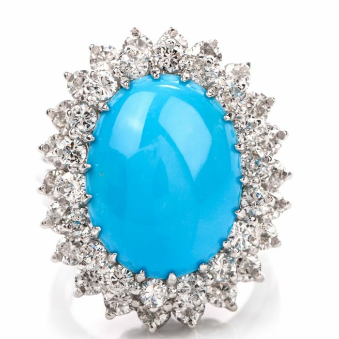 Vintage Estate 18k Gold Turquoise Cabachon 2.60ct VS Diamond Halo Cocktail Ring